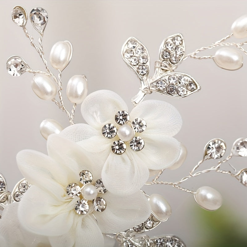Pin de cabello nupcial con flores blancas, imitación de perlas, accesorio de boda, pin de pico de pato
