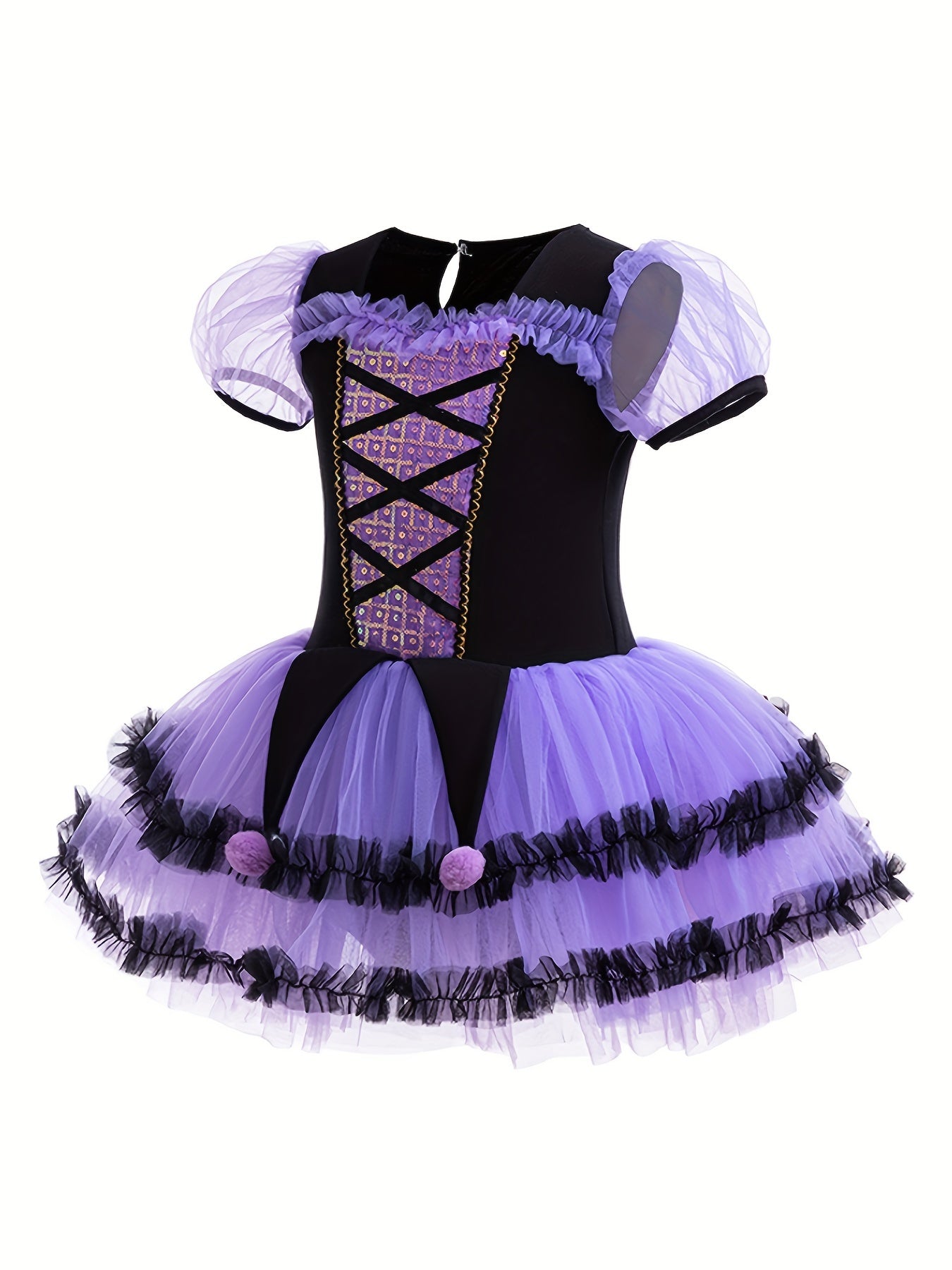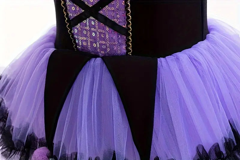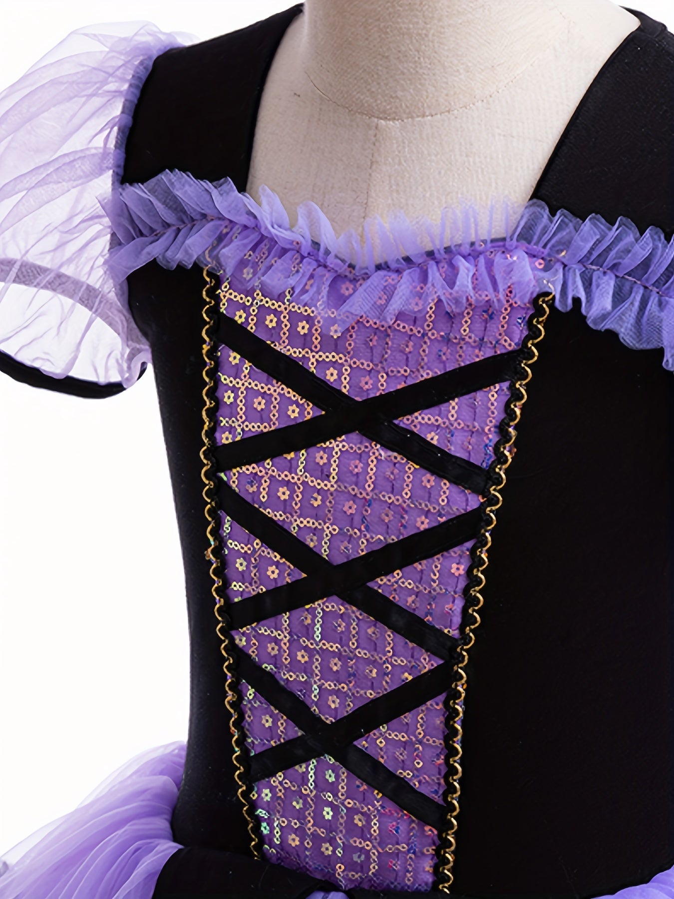 Vestido mini de corte y vuelo con estampado floral para niñas, con falda de tul y lentejuelas, para uso casual y de fiesta