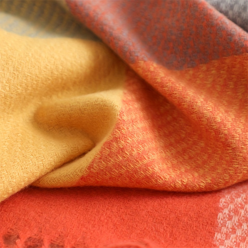 Chal con flecos para otoño e invierno, unisex, de imitación cachemira a cuadros