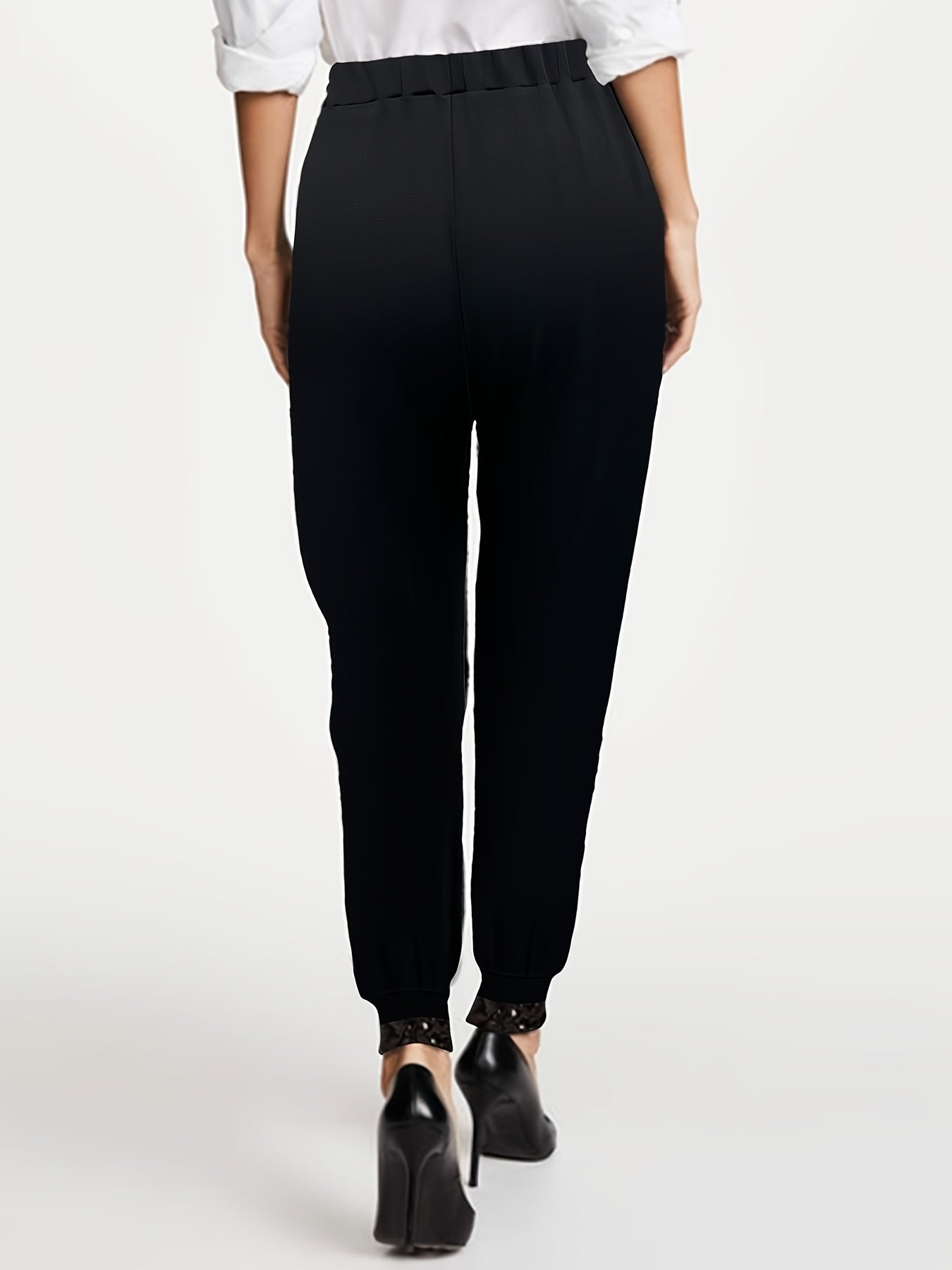 Pantalones harem de talla grande con detalle de lentejuelas, cintura alta, poliéster elástico