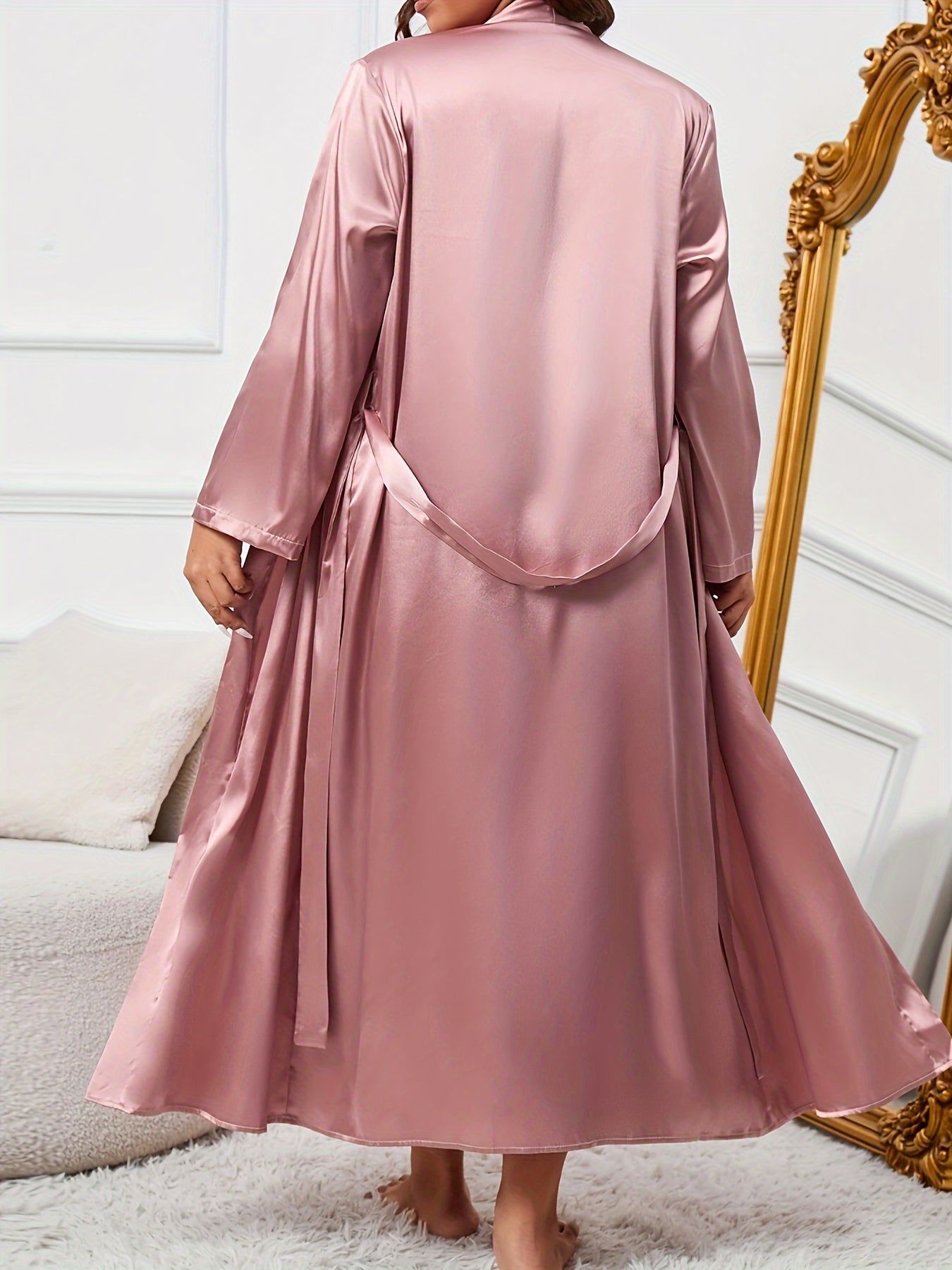 Conjunto de pijama de satén talla grande con vestido de seda y bata para otoño e invierno