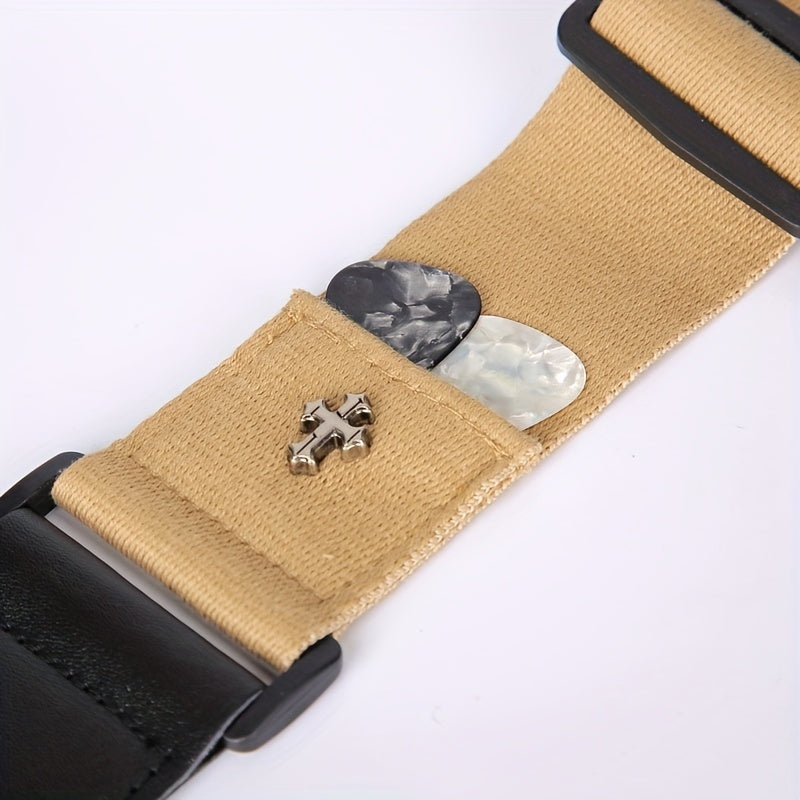 Correa de guitarra con bordado cruzado, ajustable para hombro, para bajo eléctrico, ukelele, negro, café, caqui