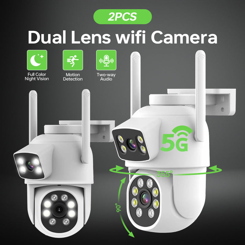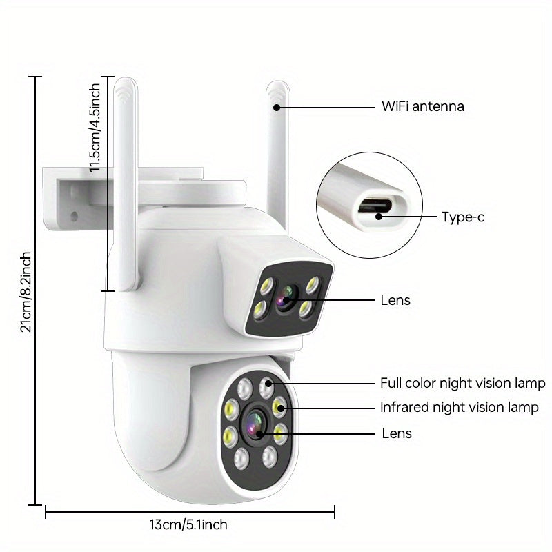 Cámaras de vigilancia de doble lente 4MP HD a prueba de agua, inalámbricas, con PTZ de 355°, visión nocturna
