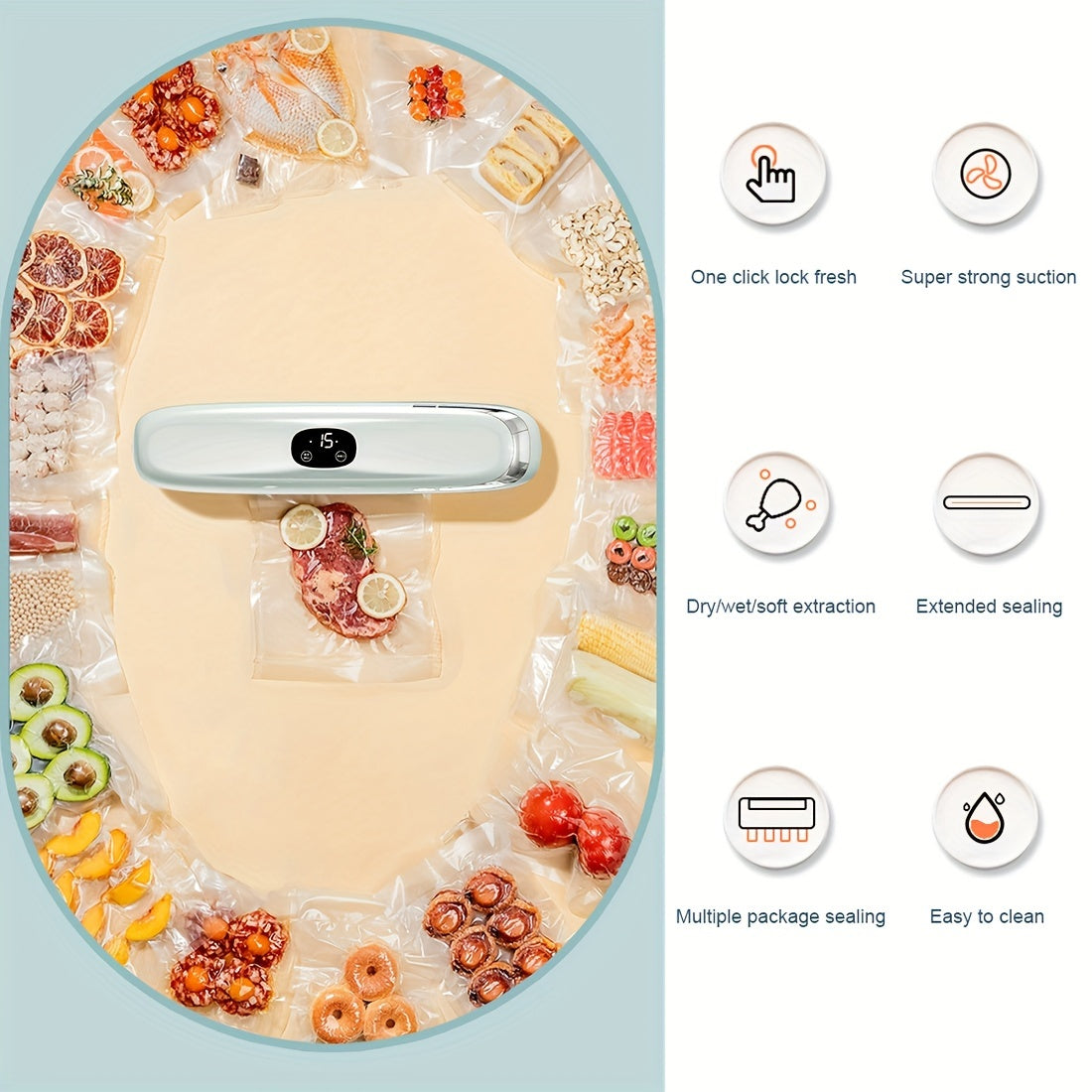 Máquina de envasado al vacío para uso doméstico según la norma europea con 10 bolsas para conservación de frescura