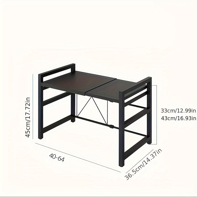 Estante expandible para horno microondas negro con estante de cocina y ganchos