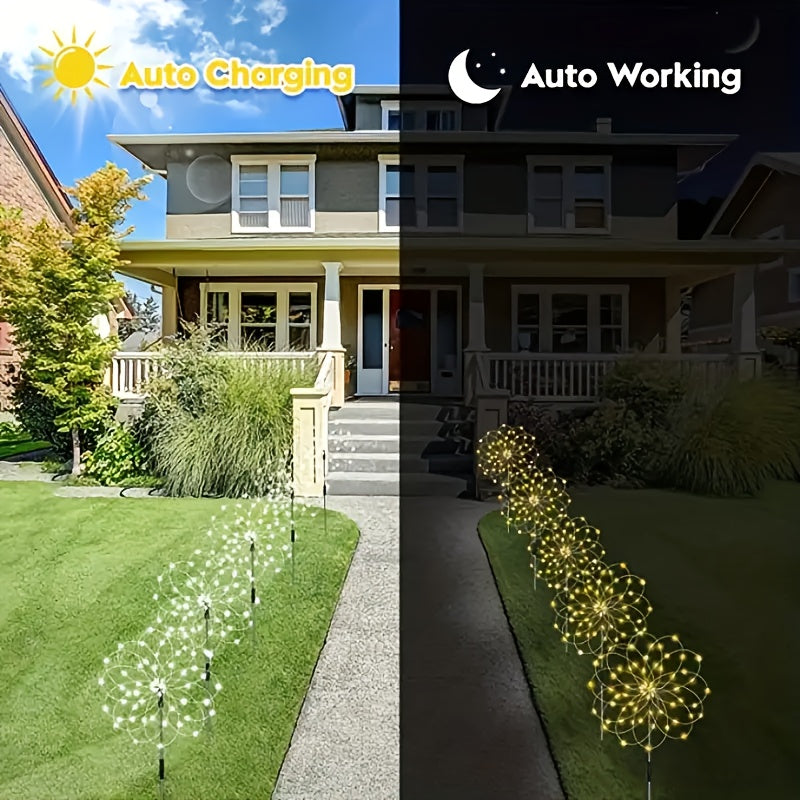 Estas luces solares de jardín FACHOI presentan un deslumbrante espectáculo de luces de fuegos artificiales solares con 8 modos de iluminación para elegir. Funciona con energía solar, está equipada con una batería de níquel y tiene un voltaje de operación de ≤36V. El módulo fotovoltaico no extraíble garantiza un rendimiento constante. Ideal para añadir un toque de encanto a tu jardín, patio, camino, sendero o para mejorar el ambiente en fiestas y bodas.