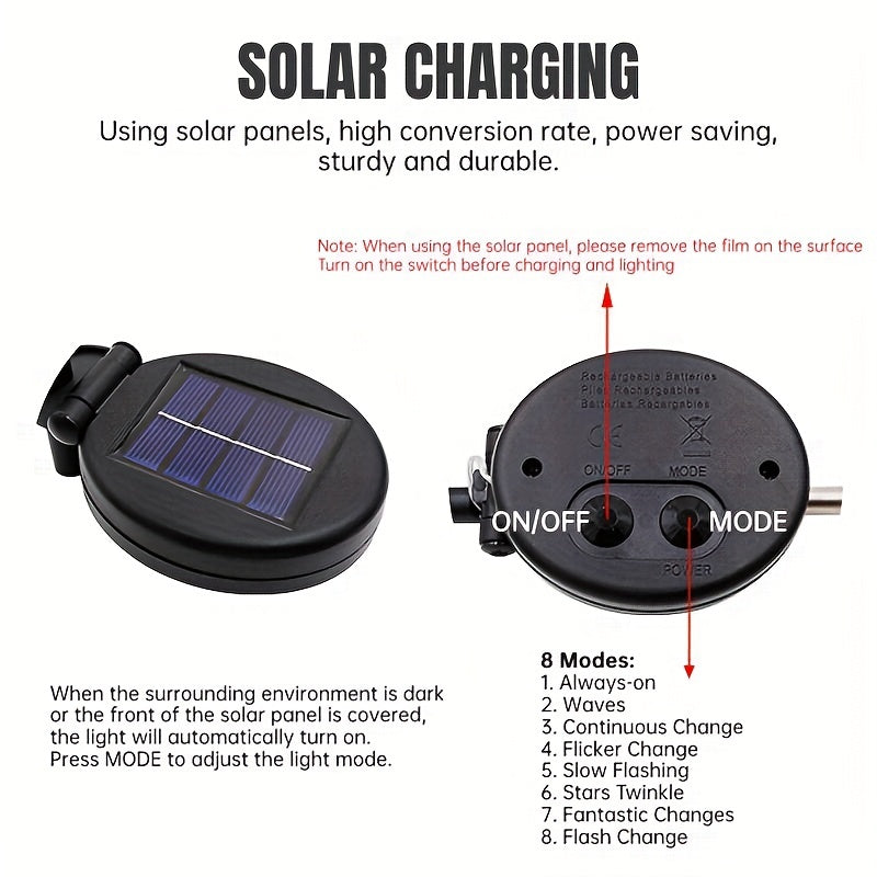 Interruptor: Control de luz, ENCENDIDO / APAGADO / Parpadeo Luces solares de jardín súper brillantes