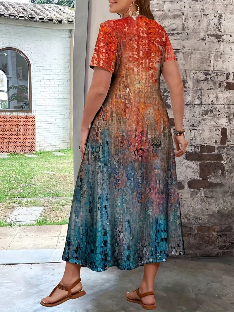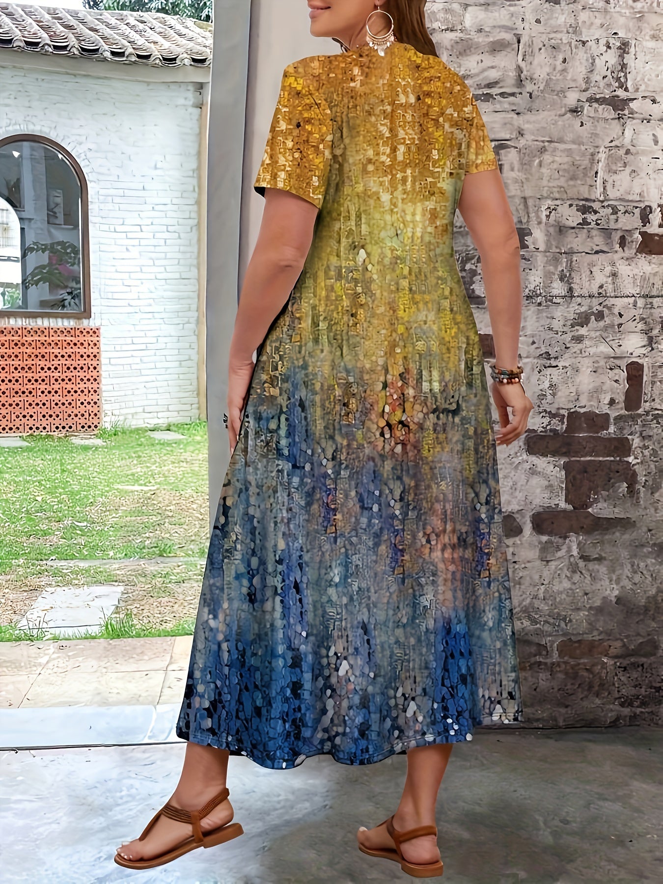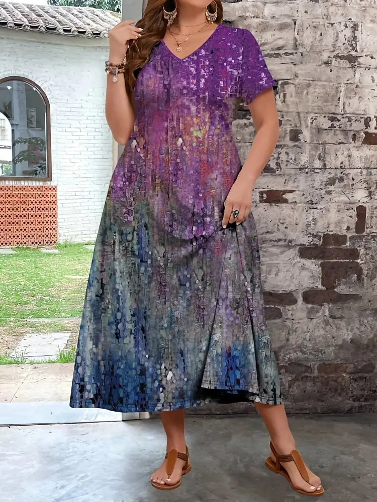 Vestido de talla grande con estampado floral y escote en V para uso casual en primavera y verano