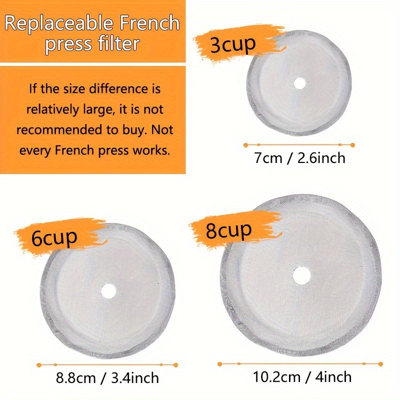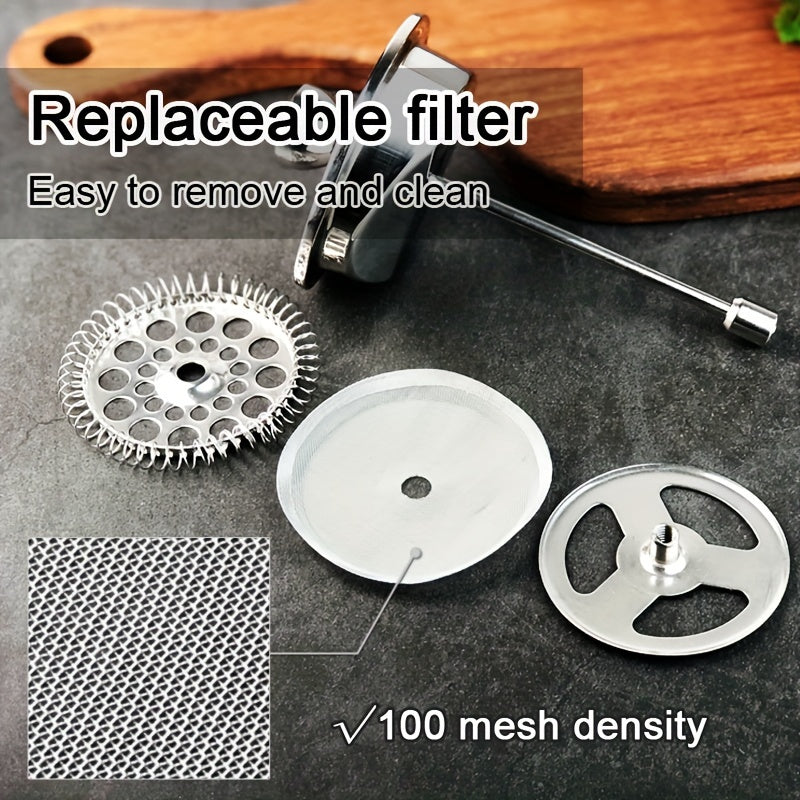 Filtro de repuesto de acero inoxidable 304 para prensa francesa, pieza duradera para cafetera