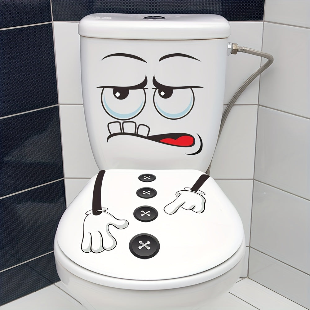 Decal de tapa de inodoro con cara sonriente, arte de pared para baño, decoración autoadhesiva