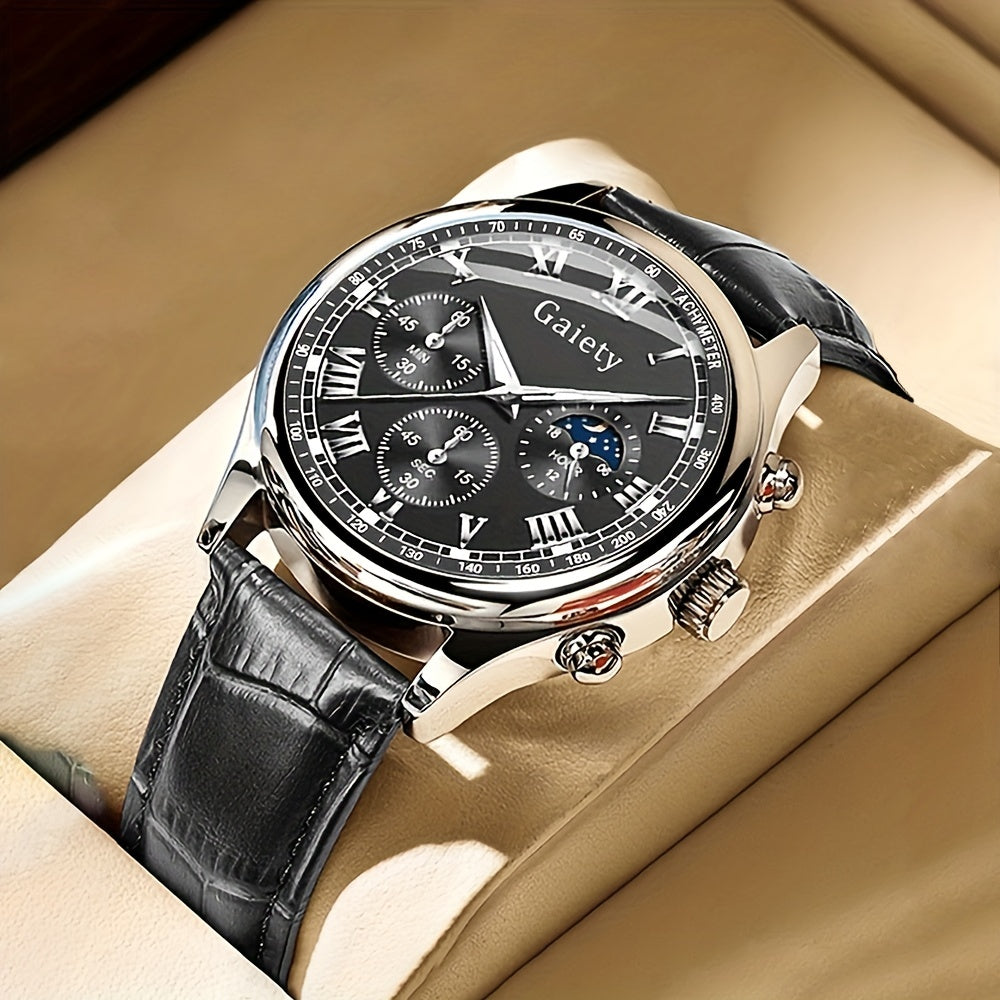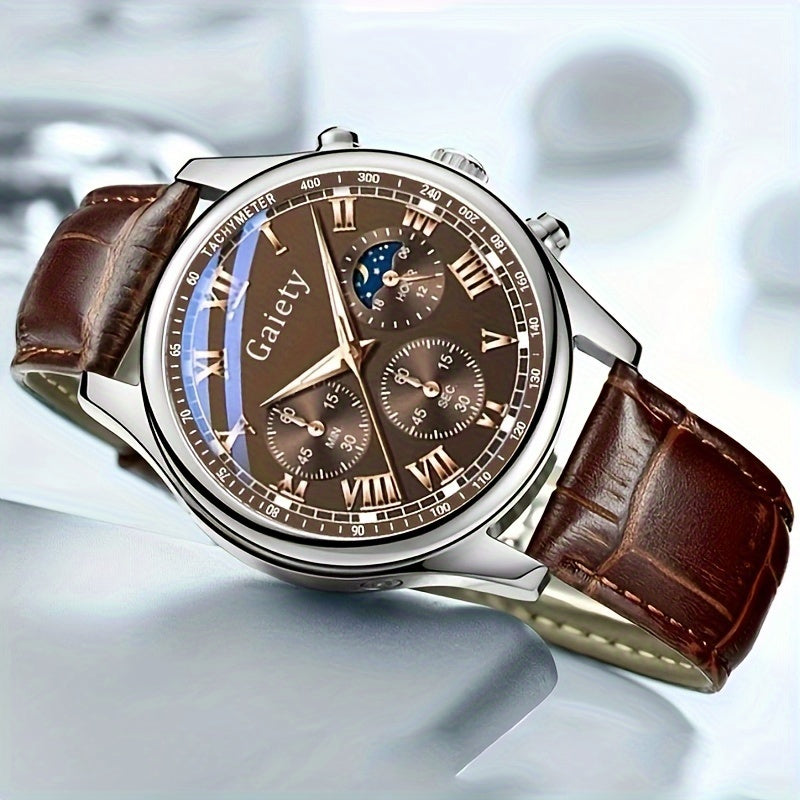 Reloj de cuarzo para hombre con correa de cuero sintético, caja de aleación, batería no recargable, moda, negocios, deporte