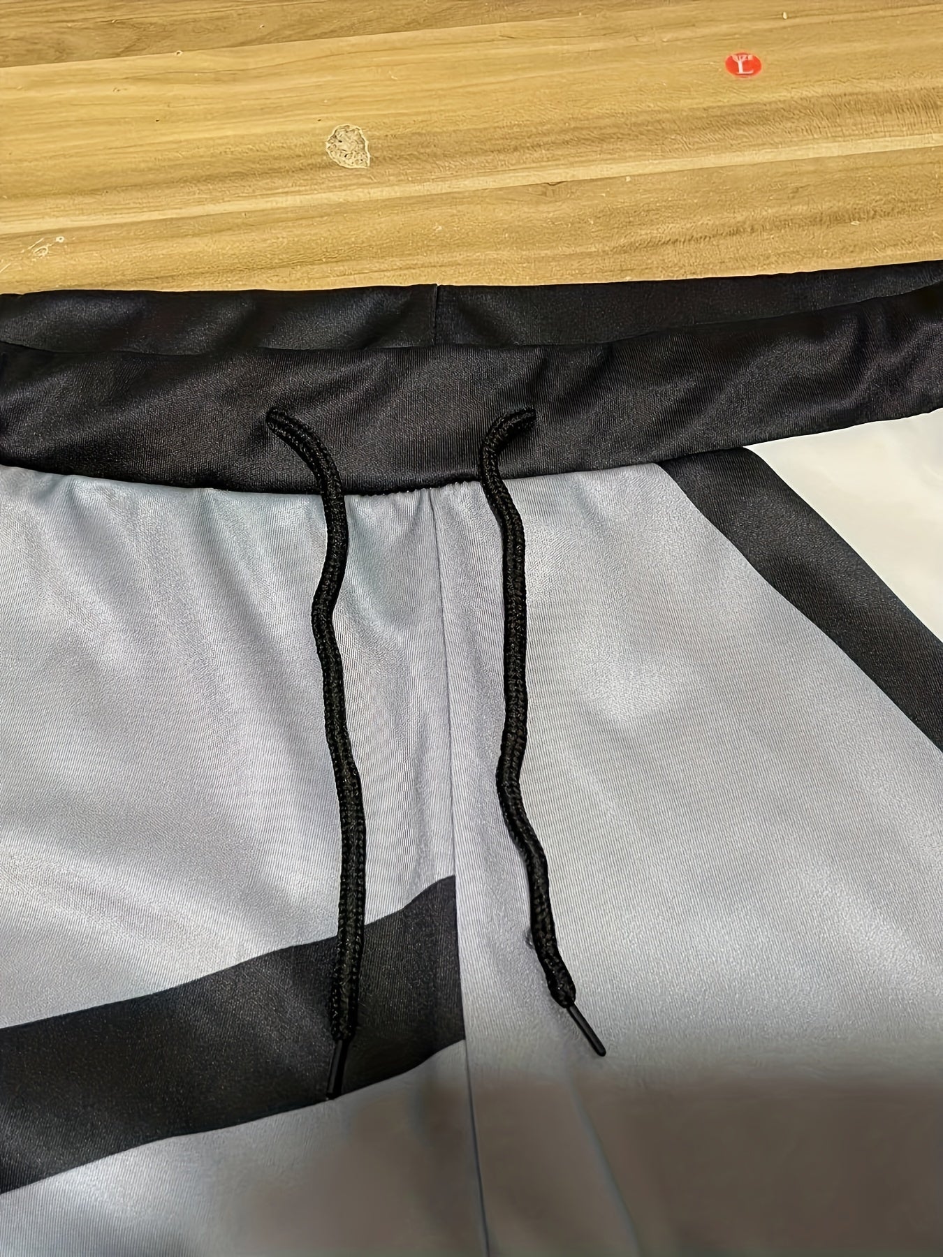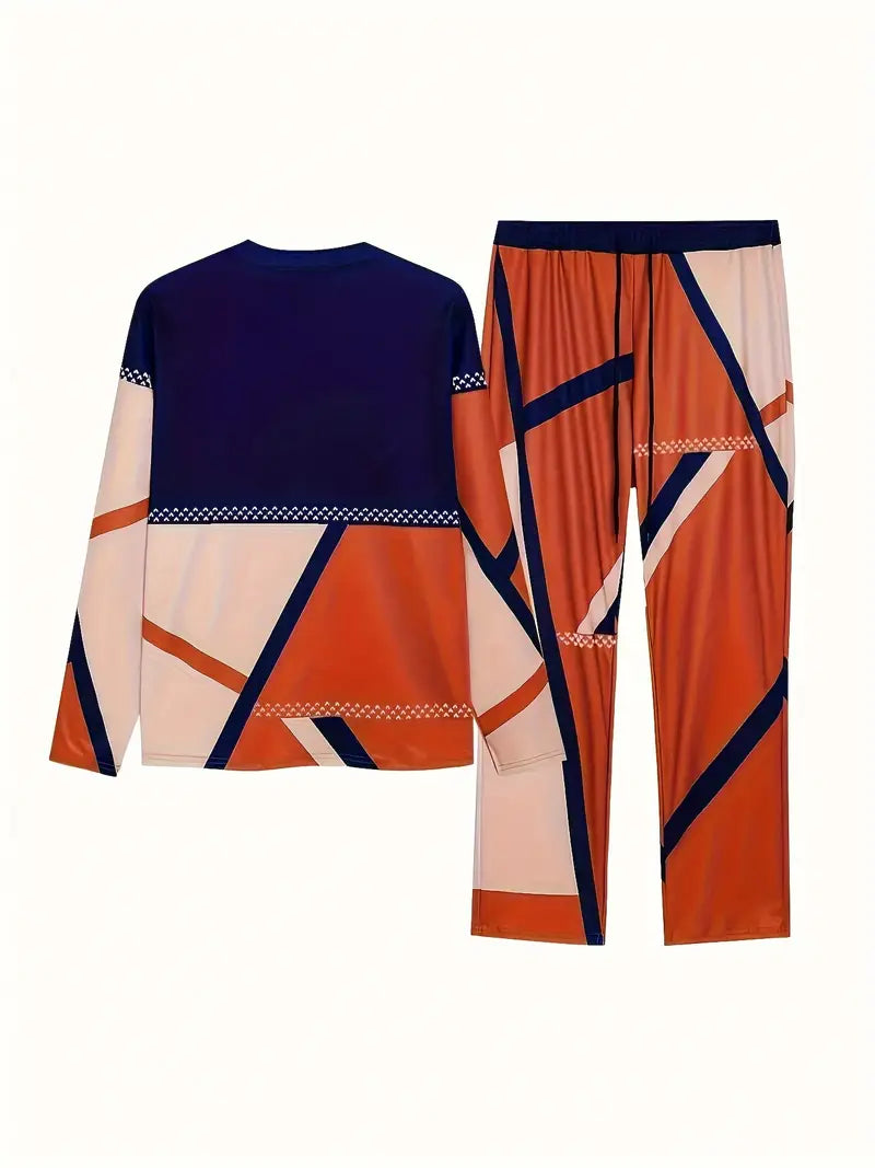 Conjunto de dos piezas con estampado geométrico de talla grande con top de cuello redondo y pantalones