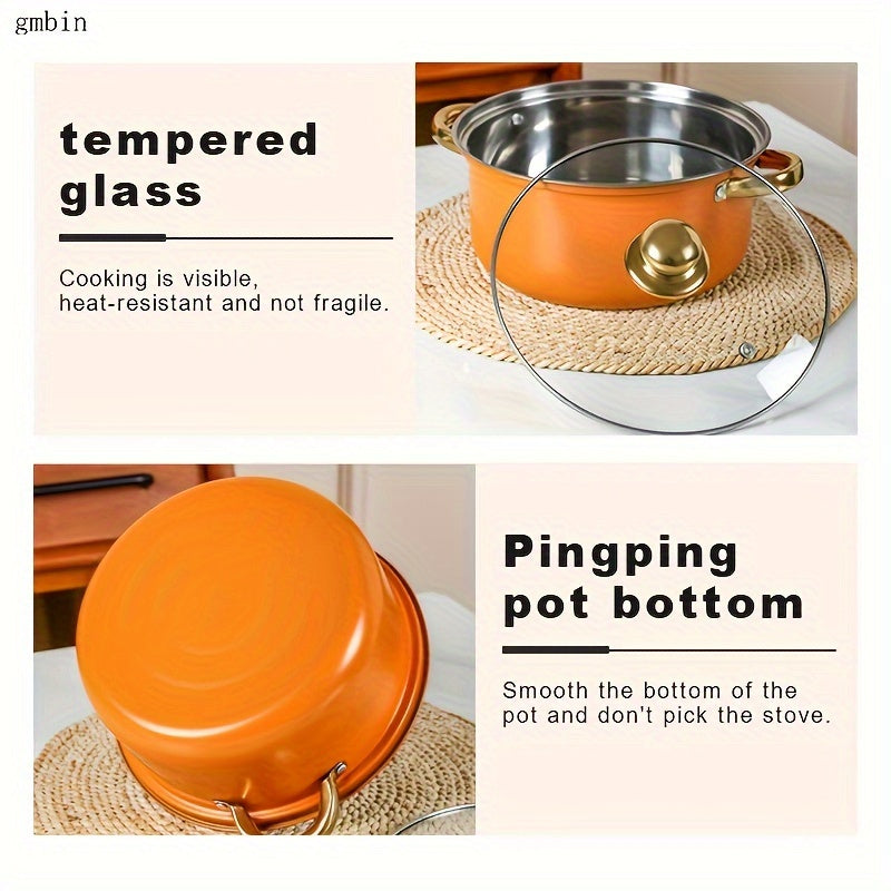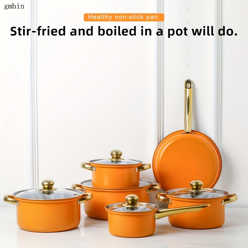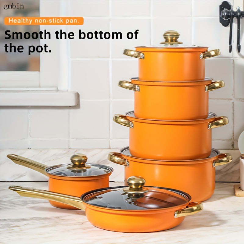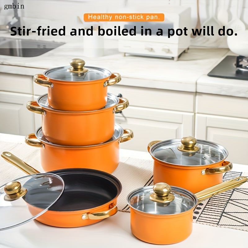 Juego de utensilios de cocina de acero inoxidable de 6 piezas, antiadherente, apto para lavavajillas, con tapas de vidrio