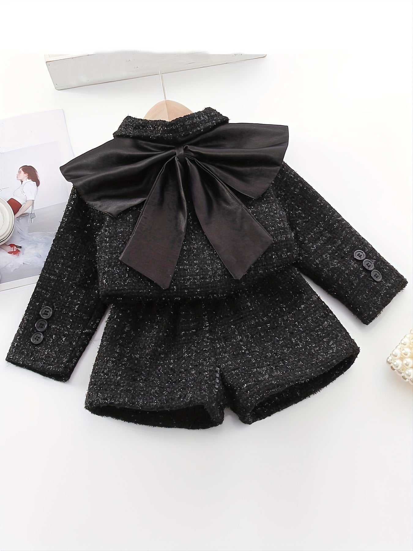 Conjunto de chaqueta de manga larga y pantalones cortos de otoño para niñas