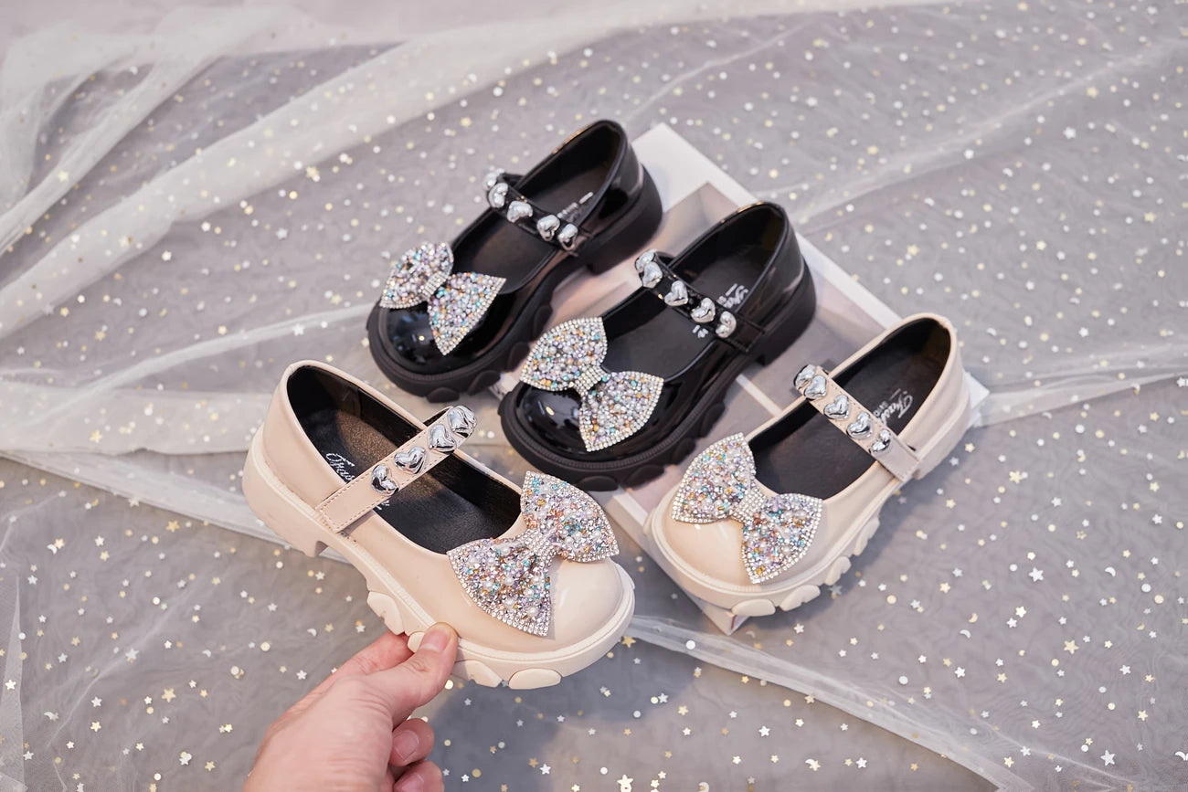 Zapatos planos para niñas con lazo y patrón de diamantes en negro, blanco y rosa para uso diario y casual