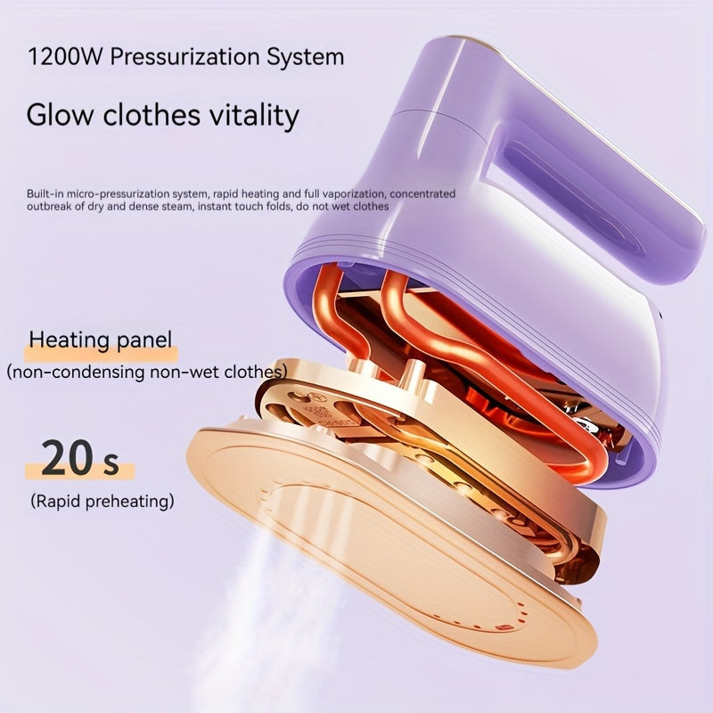 Plancha de vapor de mano de alta potencia para planchado en seco y húmedo, portátil y compacta