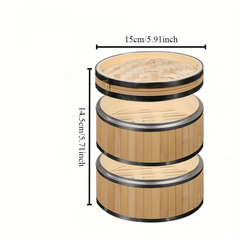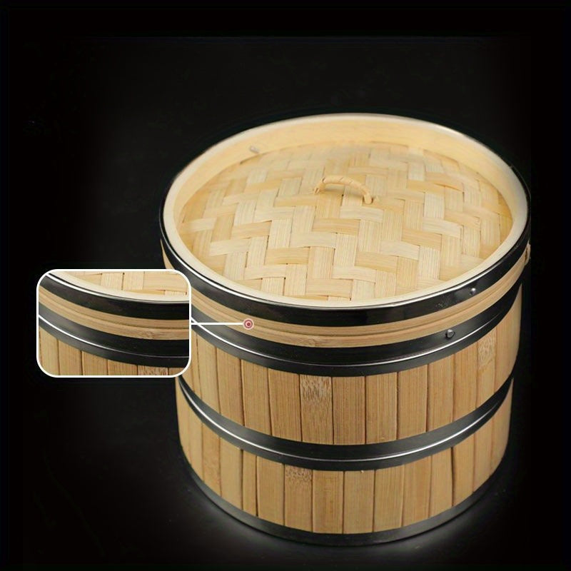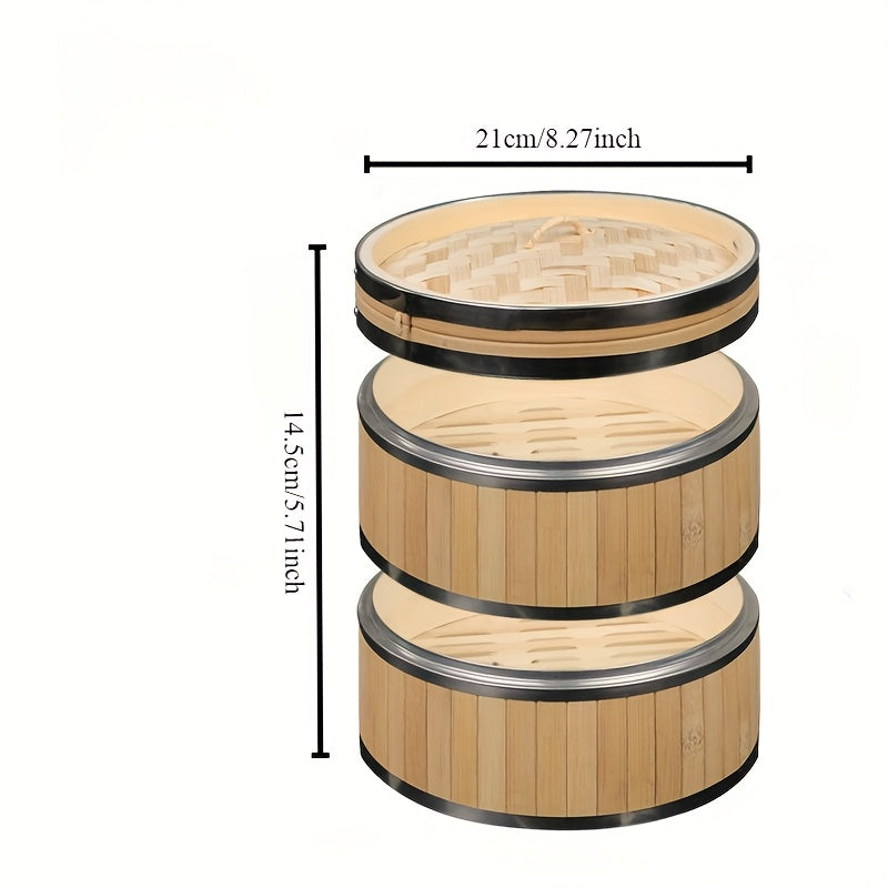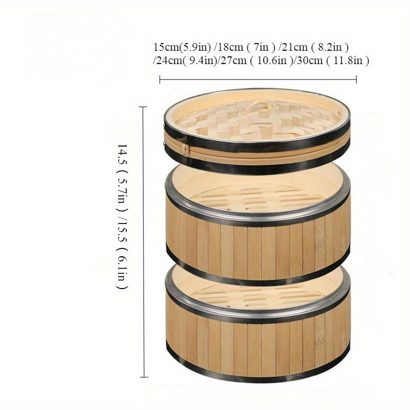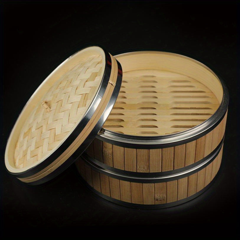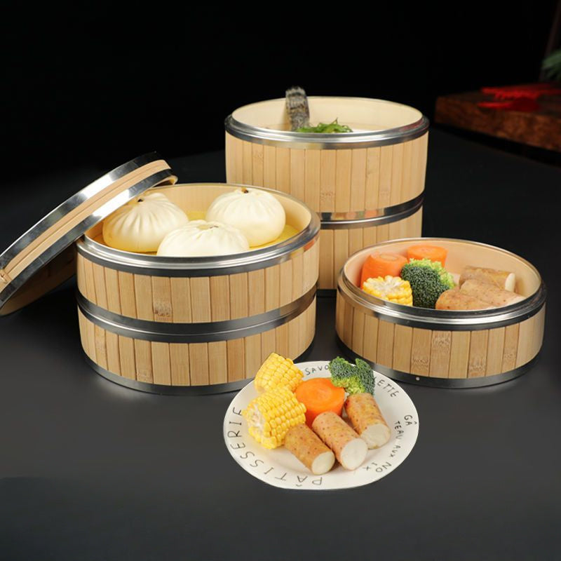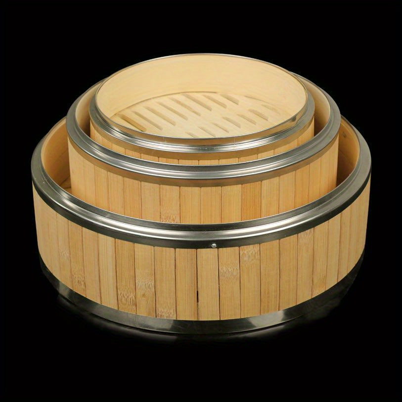 Cesta de bambú con tapa de acero inoxidable para dumplings, mariscos, verduras, uso en el hogar y al aire libre