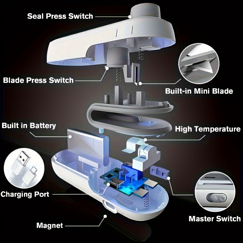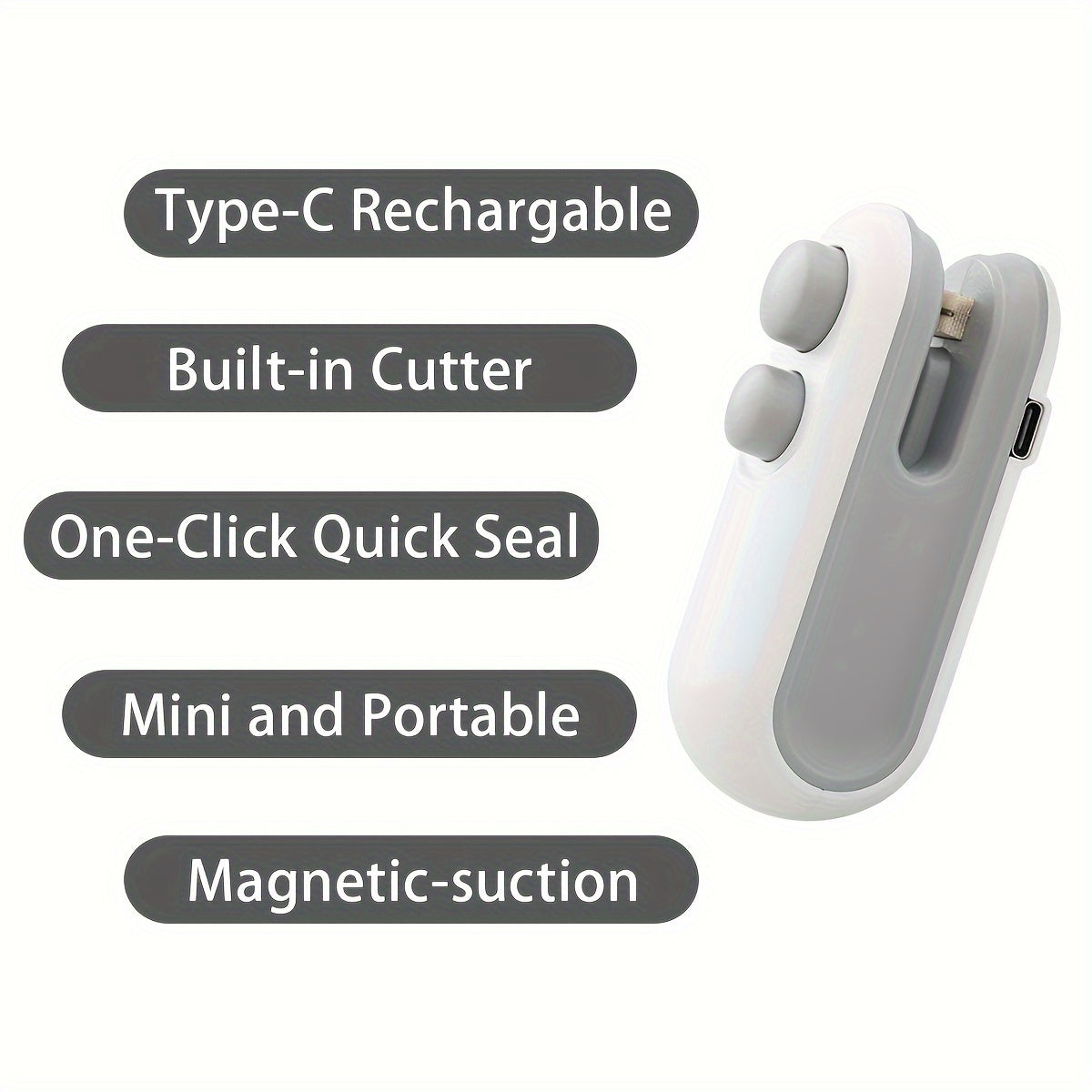 Sellador de bolsas de mano con recarga USB, cierre magnético, sellador de bolsas de aperitivos, operado por batería