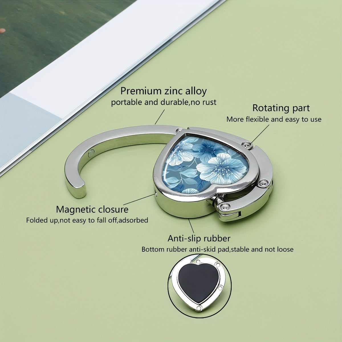 Percha para bolso de aleación de zinc con forma de corazón estilo bohemio, plegable, para mesa, gancho para bolso