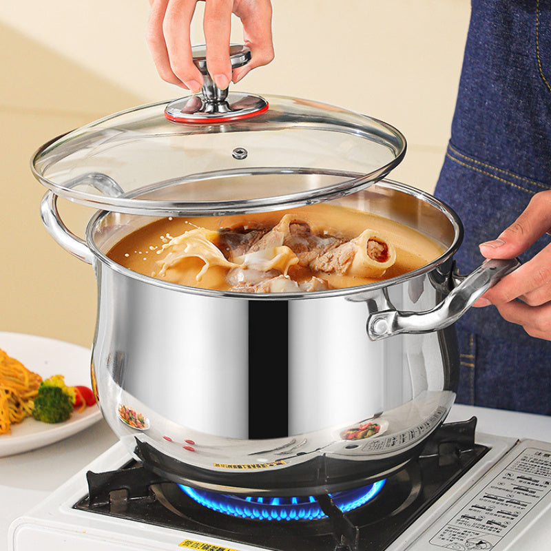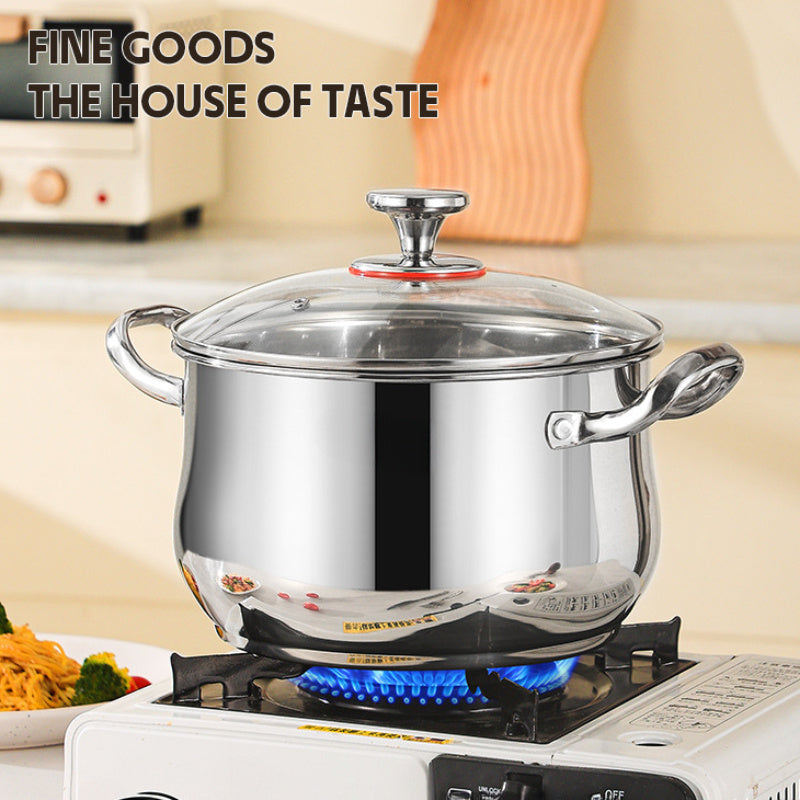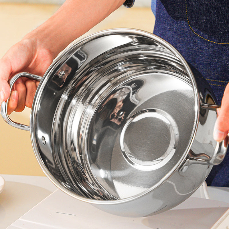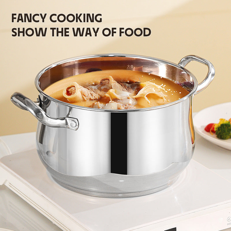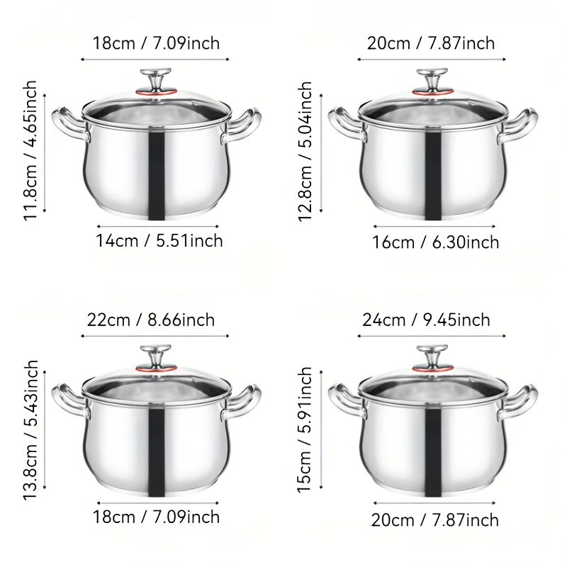Juego de 8 piezas de ollas de acero inoxidable con gran capacidad y asas resistentes al calor