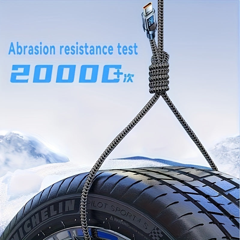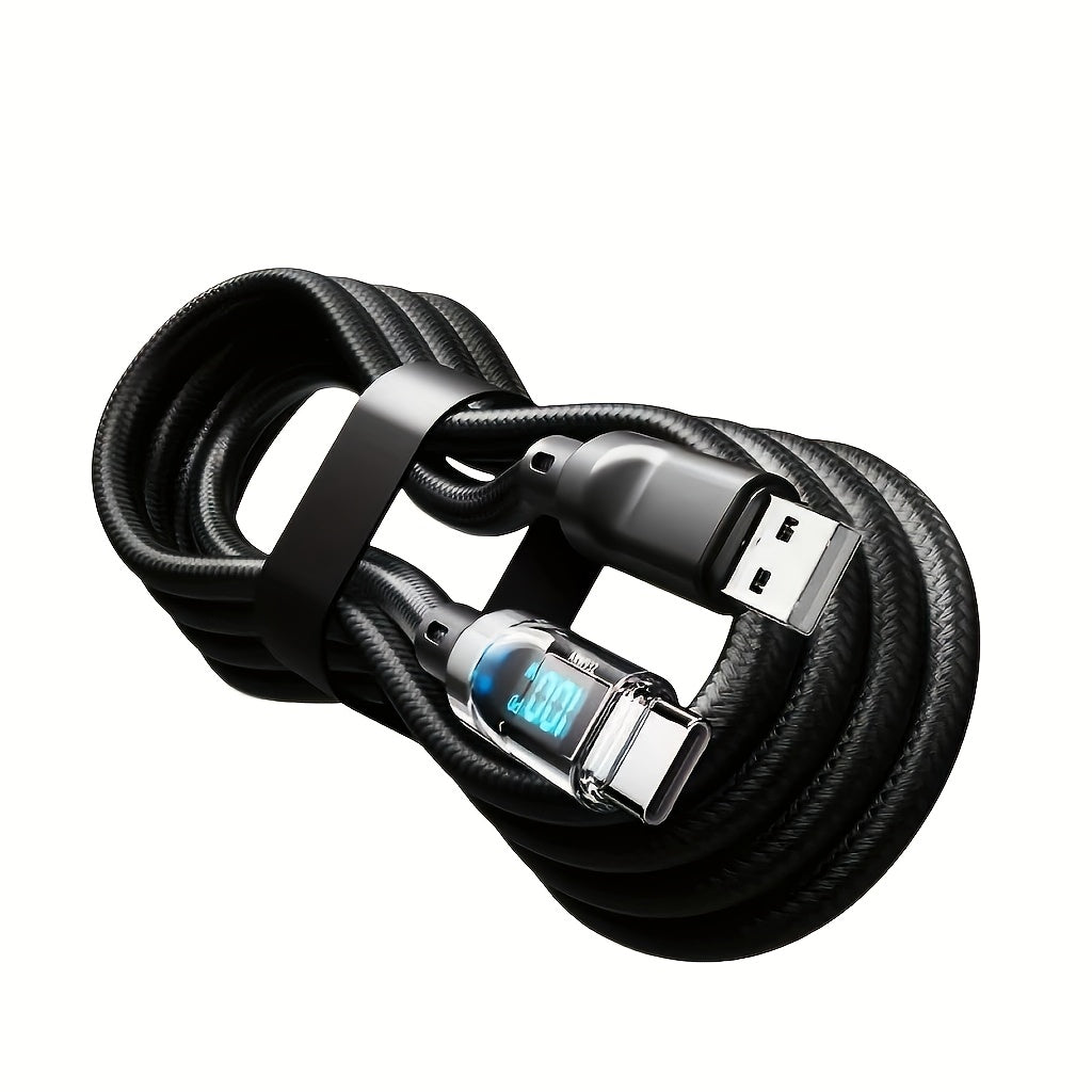Cable de carga USB-C de 120W con pantalla LED de potencia, cable de datos plano de PVC
