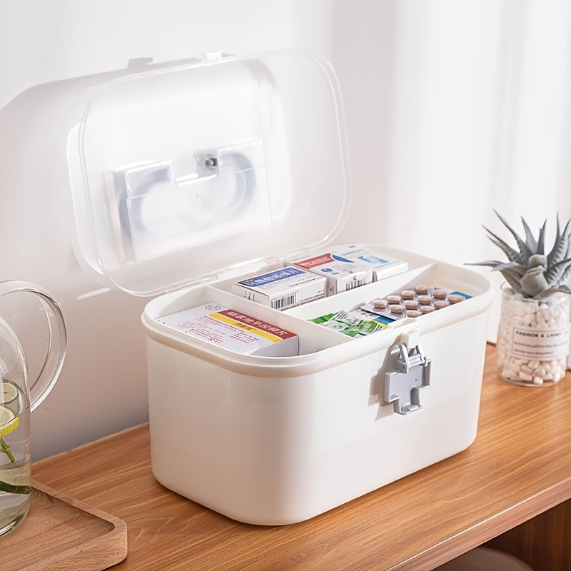 Gran caja de medicina a prueba de polvo con gran capacidad y múltiples compartimentos de almacenamiento