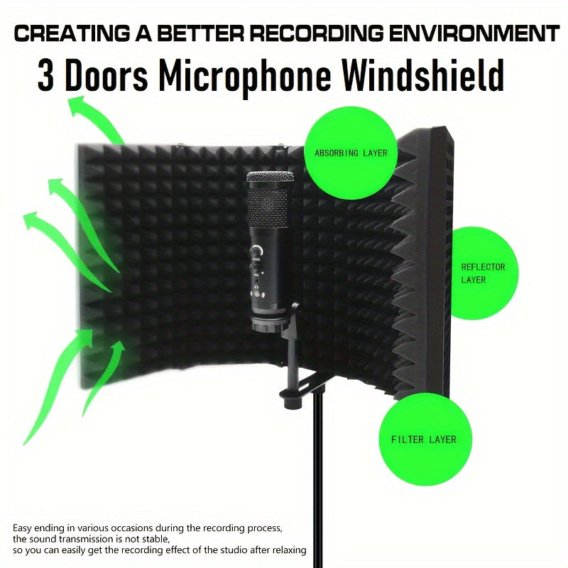 Escudo de aislamiento para micrófono de estudio, cortaviento de algodón, absorbente de sonido para grabación