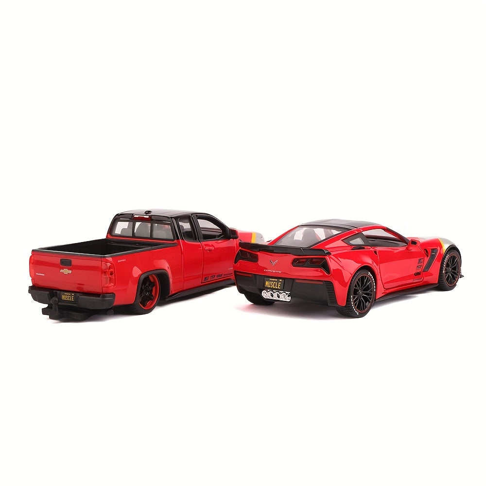 Juego de coches de juguete de aleación roja a escala 1:24 para niños con camiones y corvettes