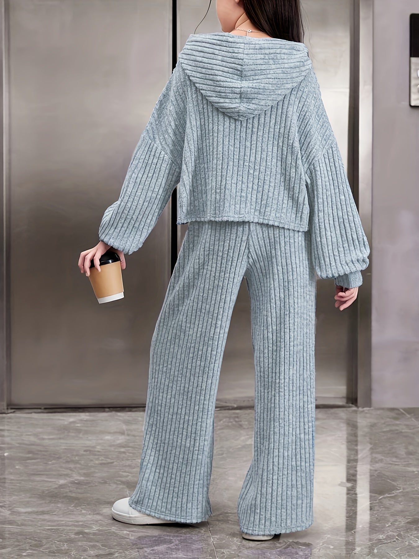 Conjunto de punto para niños con camiseta de manga larga con capucha y pantalones de pierna ancha para otoño e invierno
