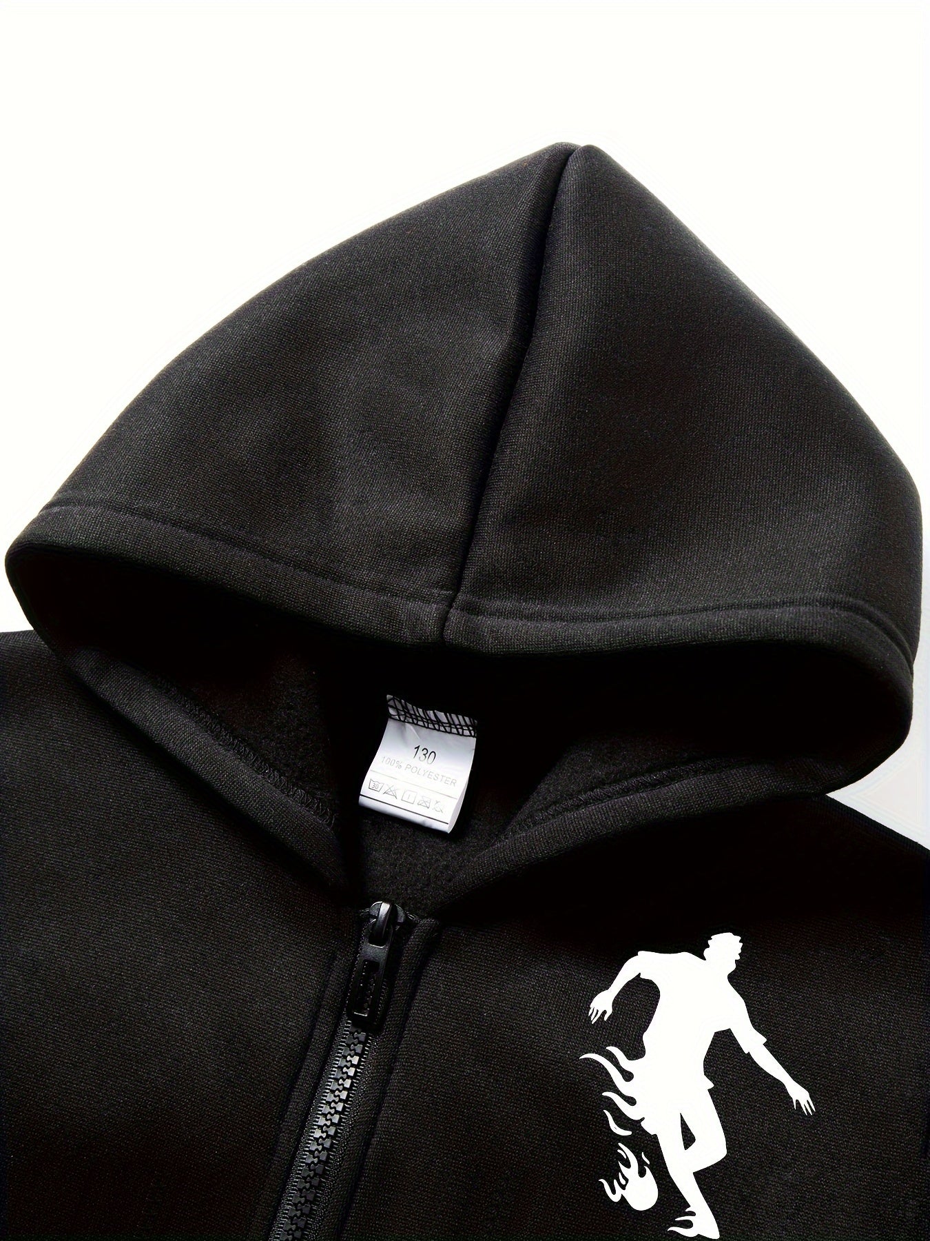Conjunto de chándal con capucha y estampado de jugadores de fútbol para niñas, chicas y niños, de poliéster, casual, para otoño e invierno