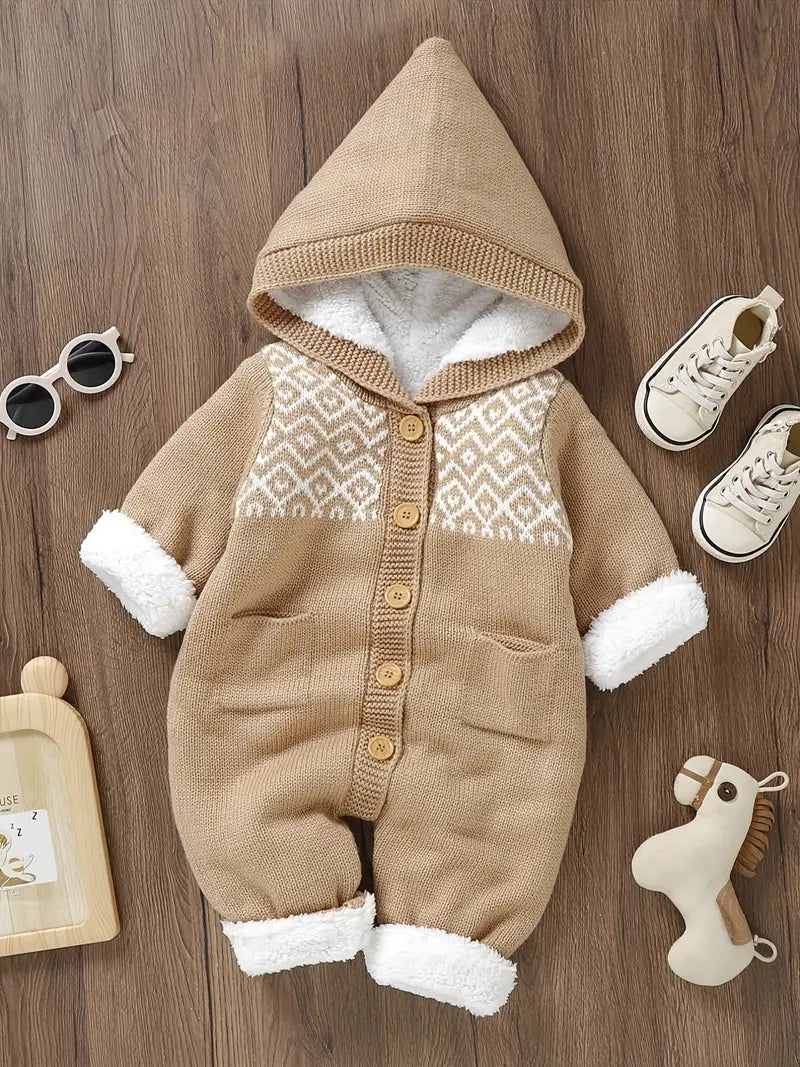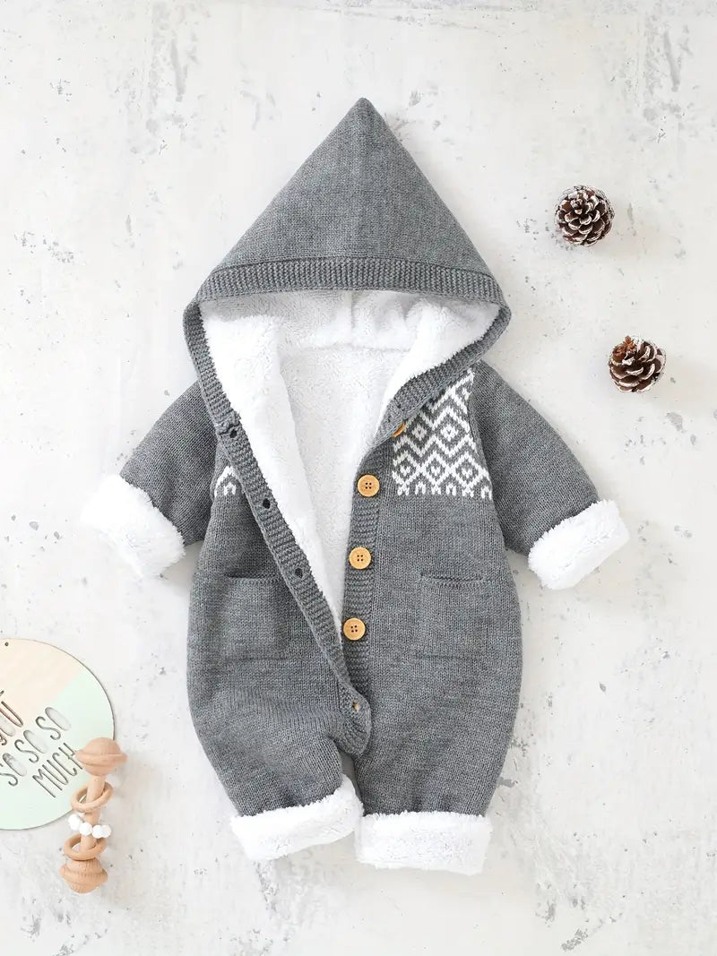 Pijama de punto para recién nacido con mangas largas y pantalones con capucha