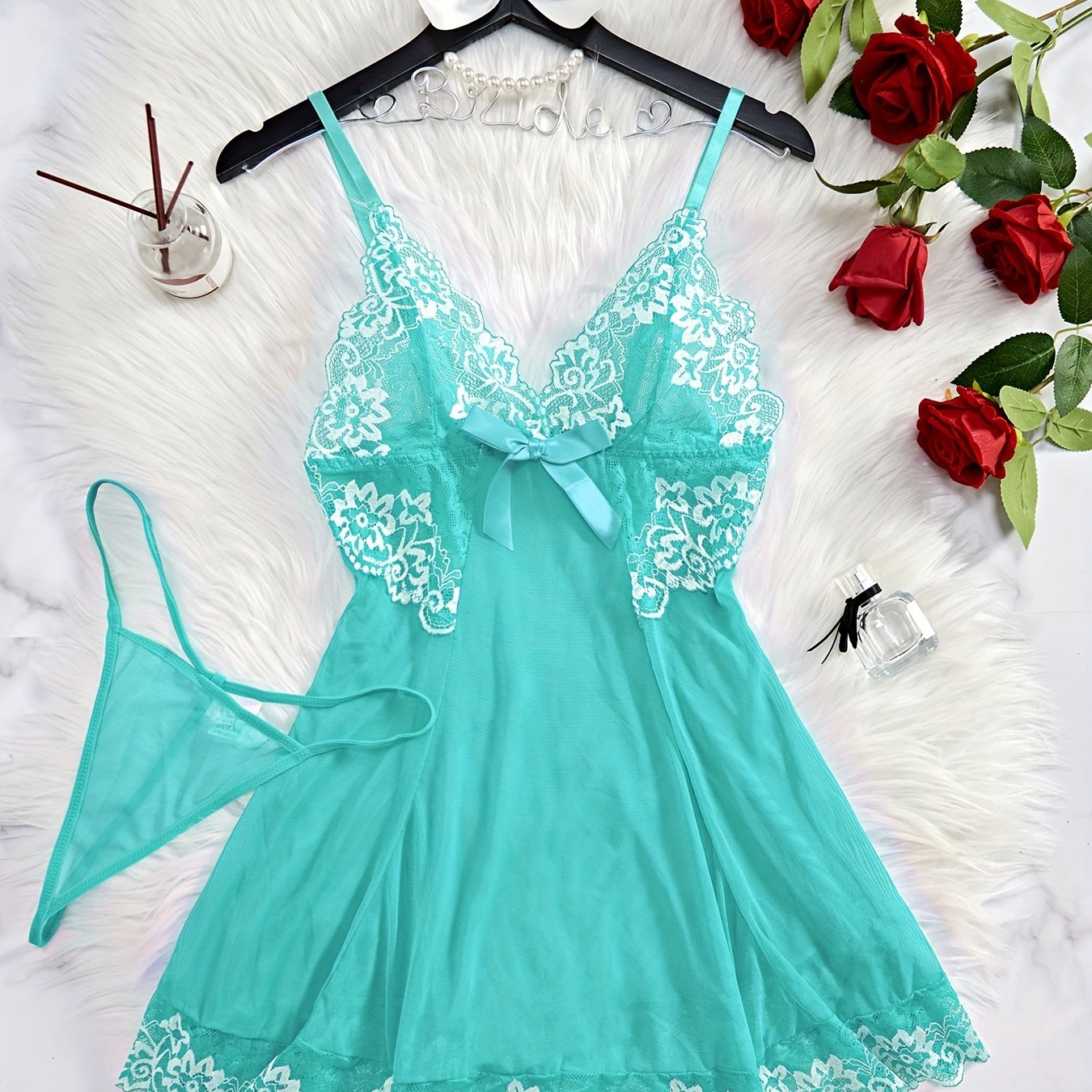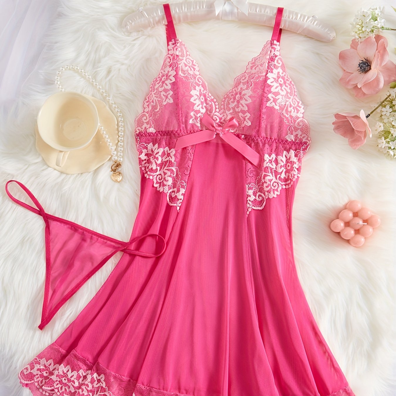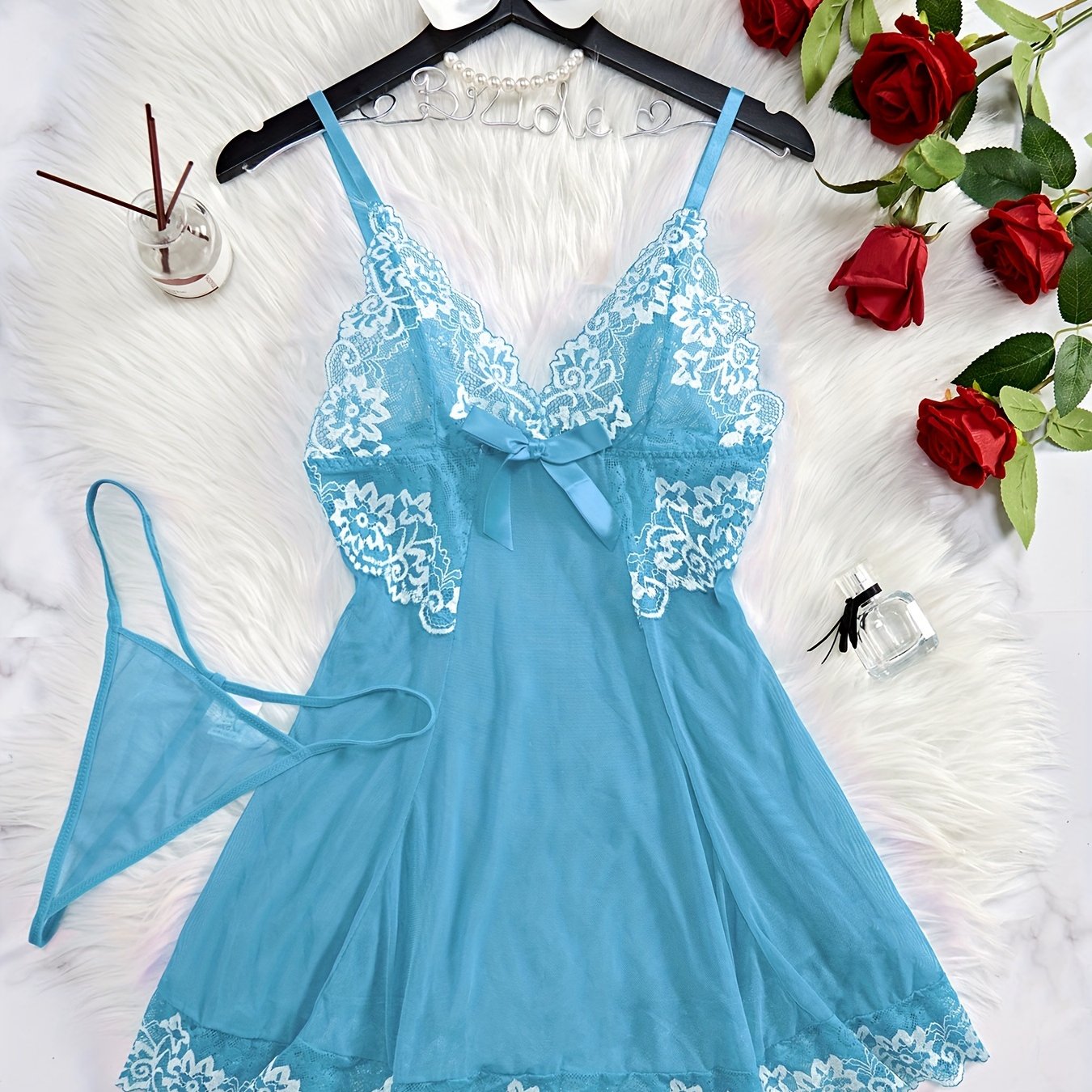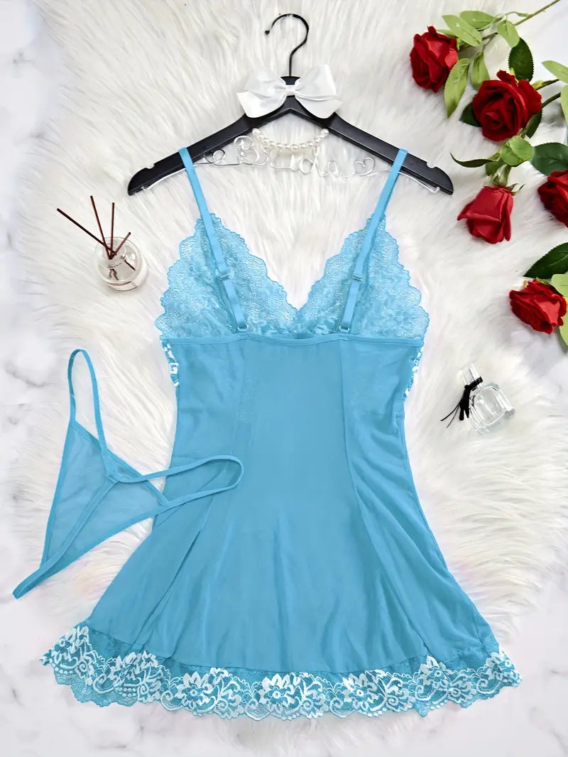 Camison de encaje para adultos con la espalda profunda en forma de V y lazo para dormir o celebraciones