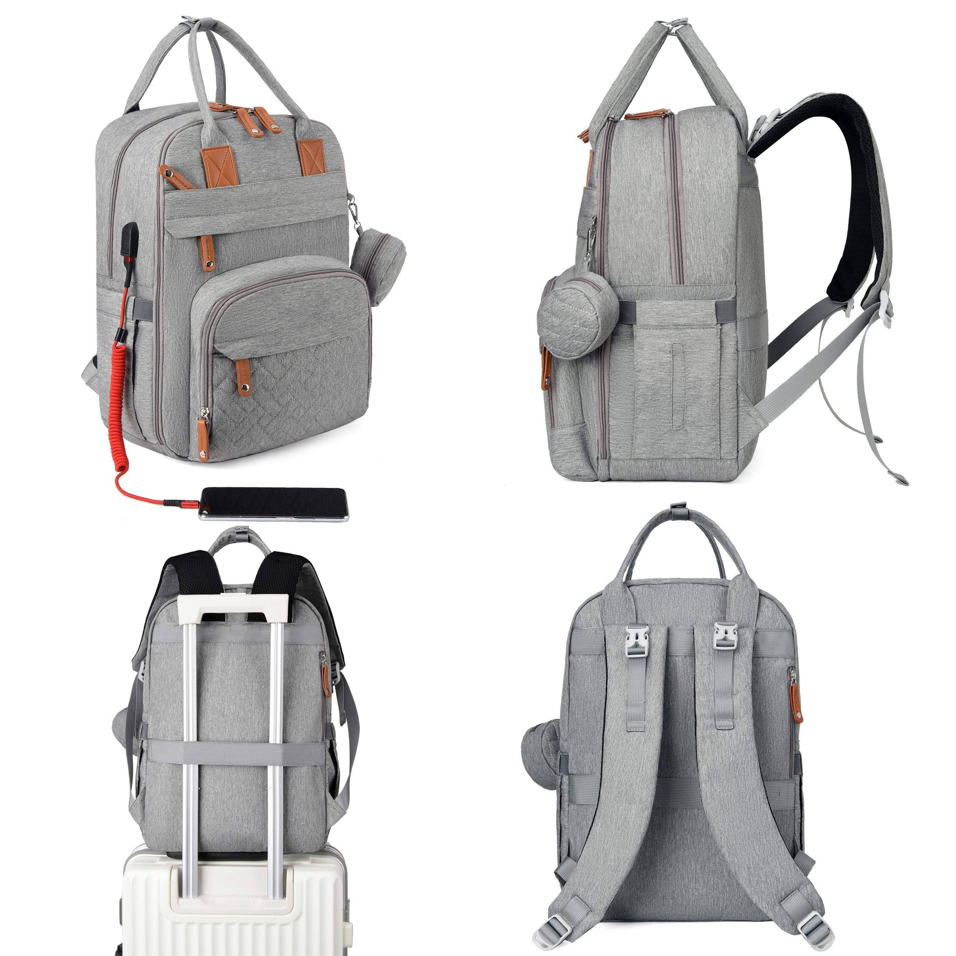 Mochila de pañales de gran capacidad con bolsillos aislantes, correas impermeables para cochecito para viajes