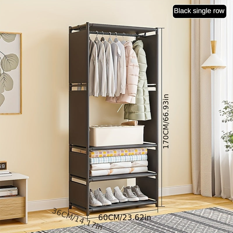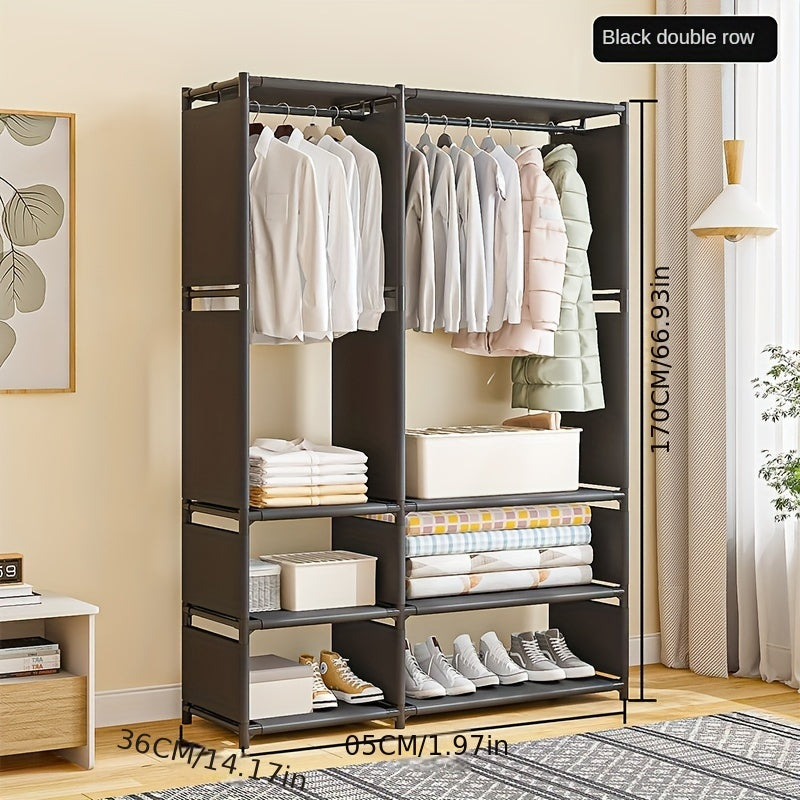 Gran perchero de metal negro con ganchos y estantes para dormitorio y entrada