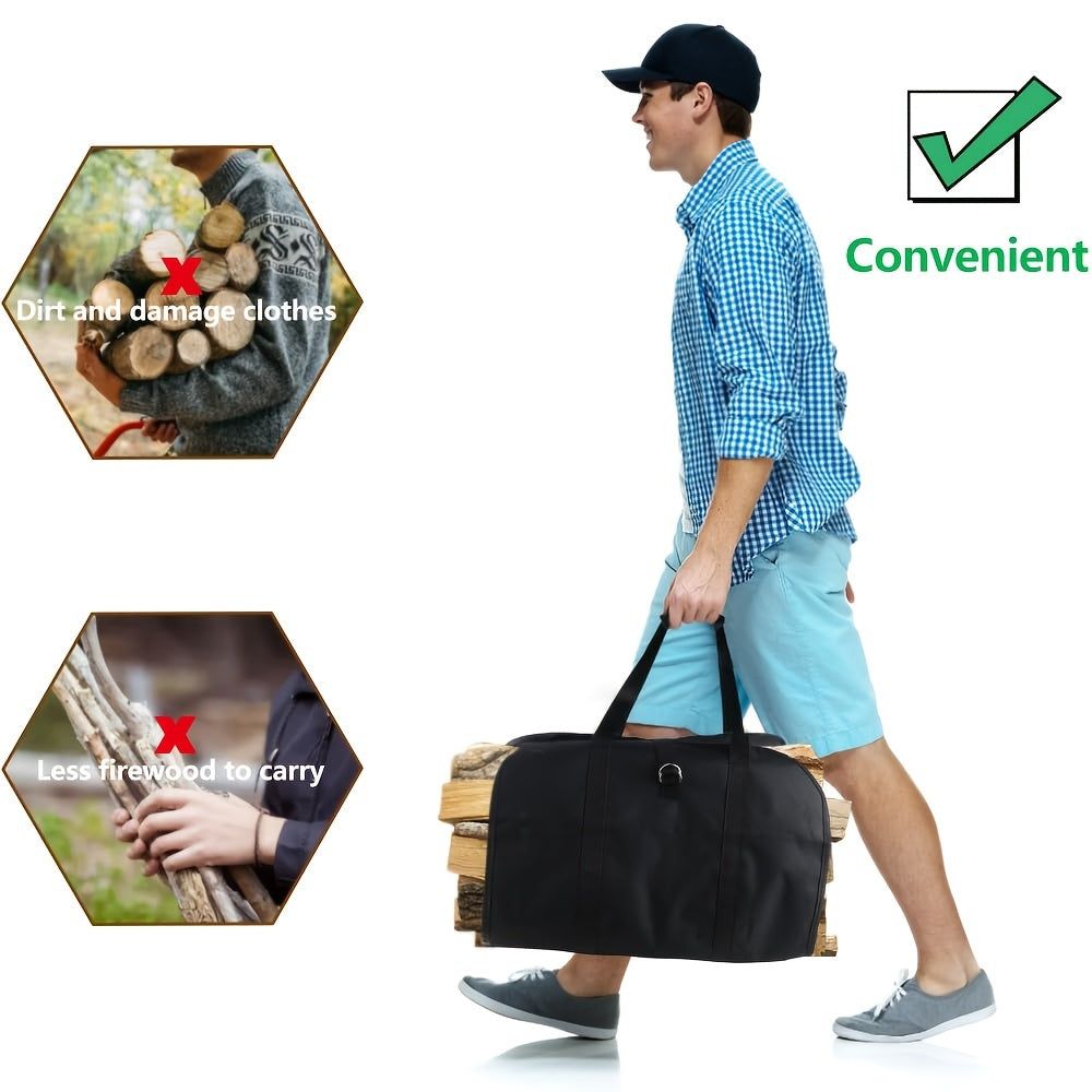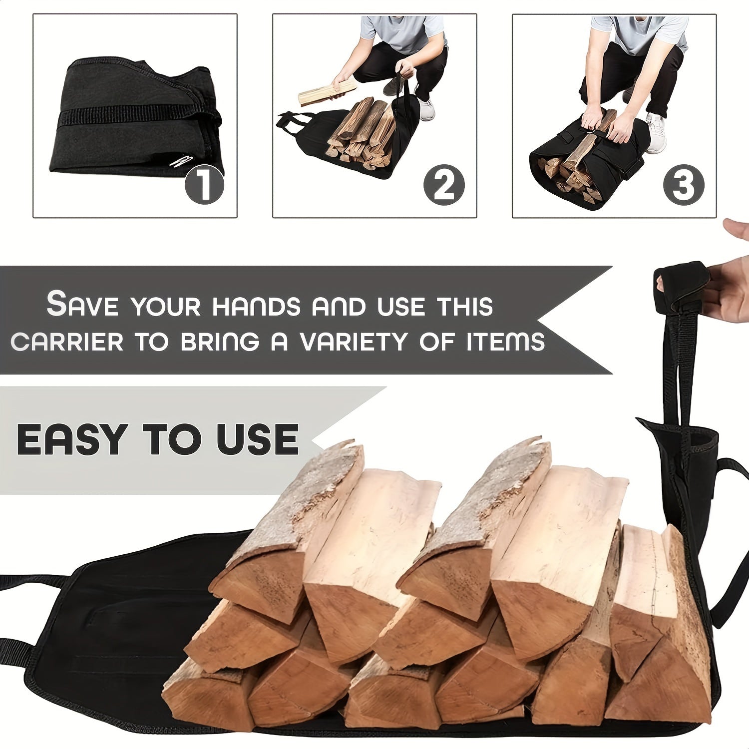 Bolsa de transporte de madera de trigo de gran capacidad con asas para transporte de troncos al aire libre