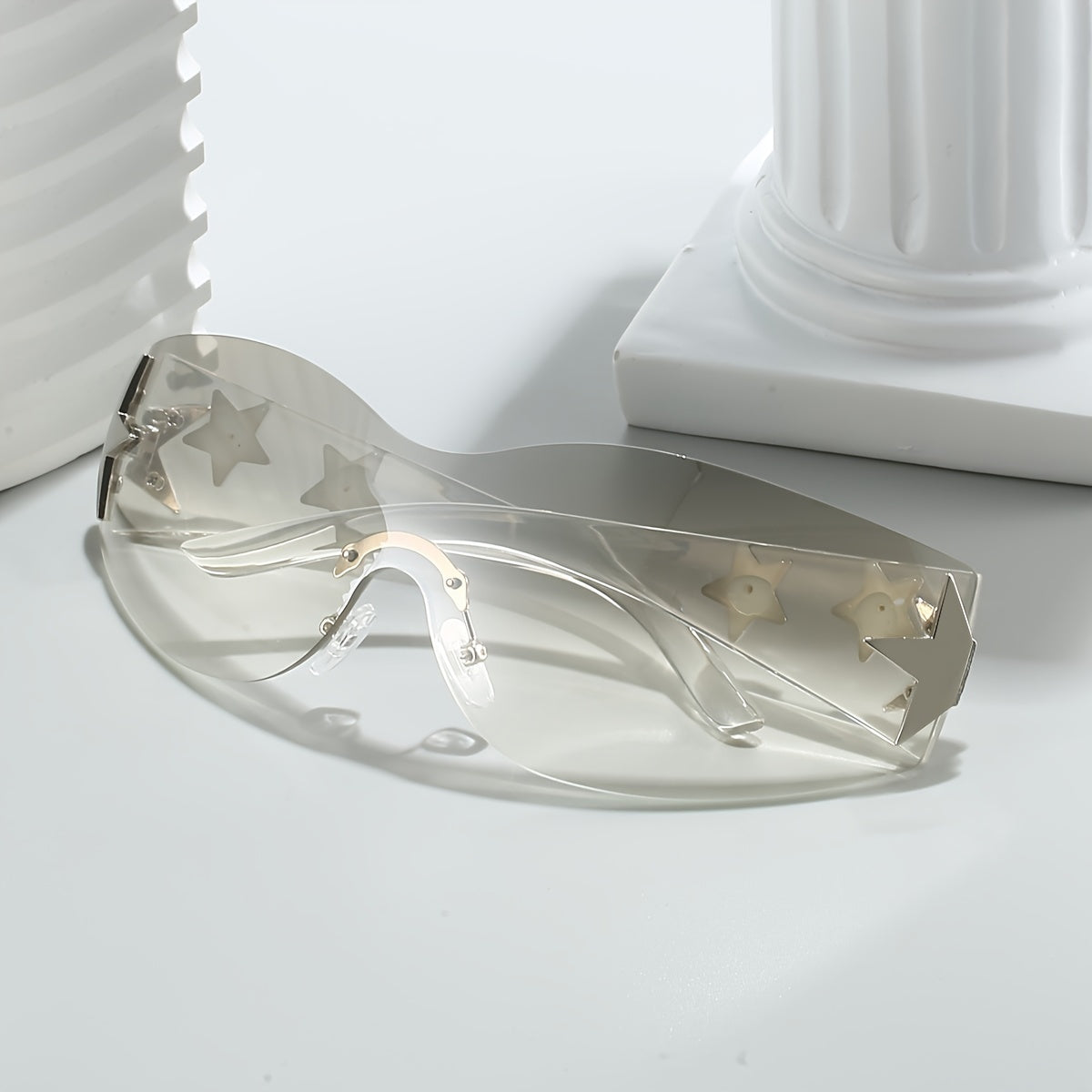 Gafas de moda unisex de gran tamaño con diseño futurista sin marco y decoraciones de estrellas