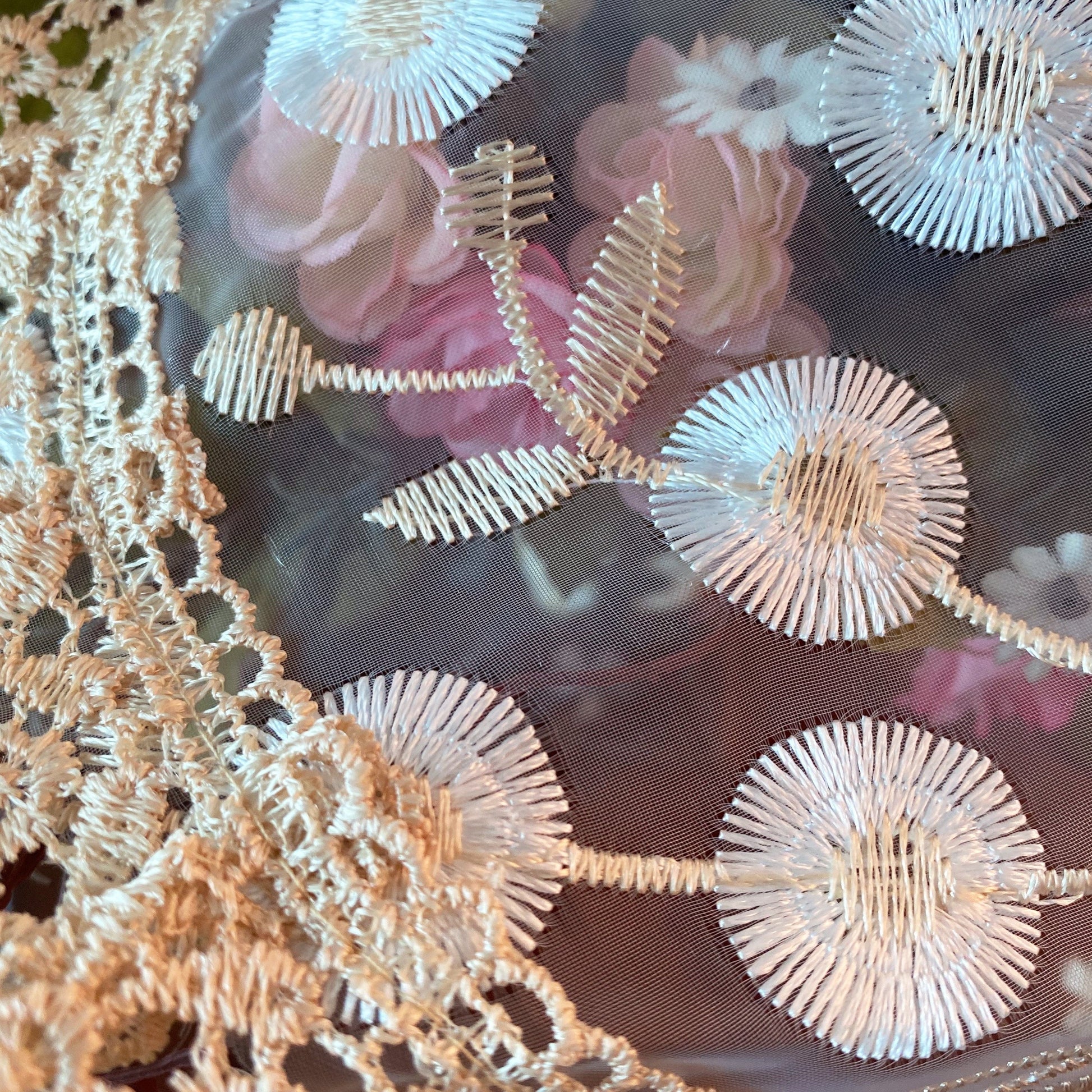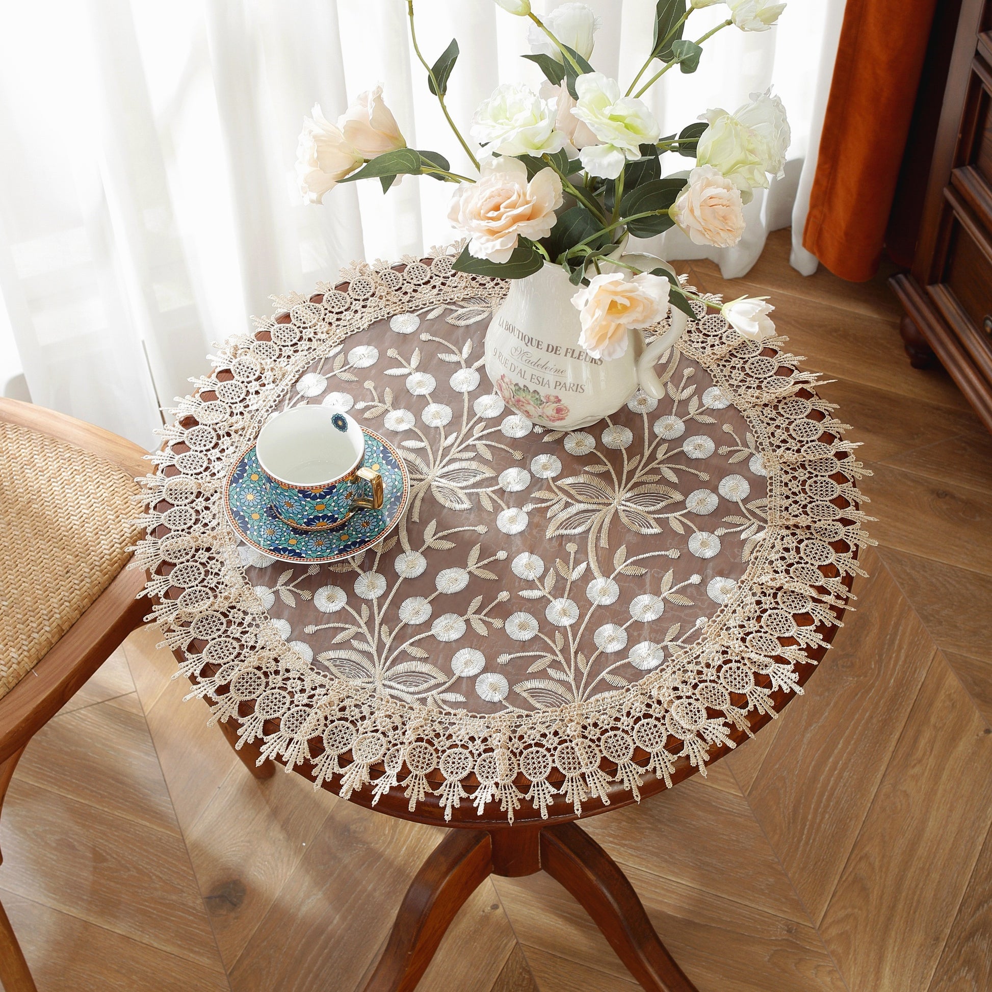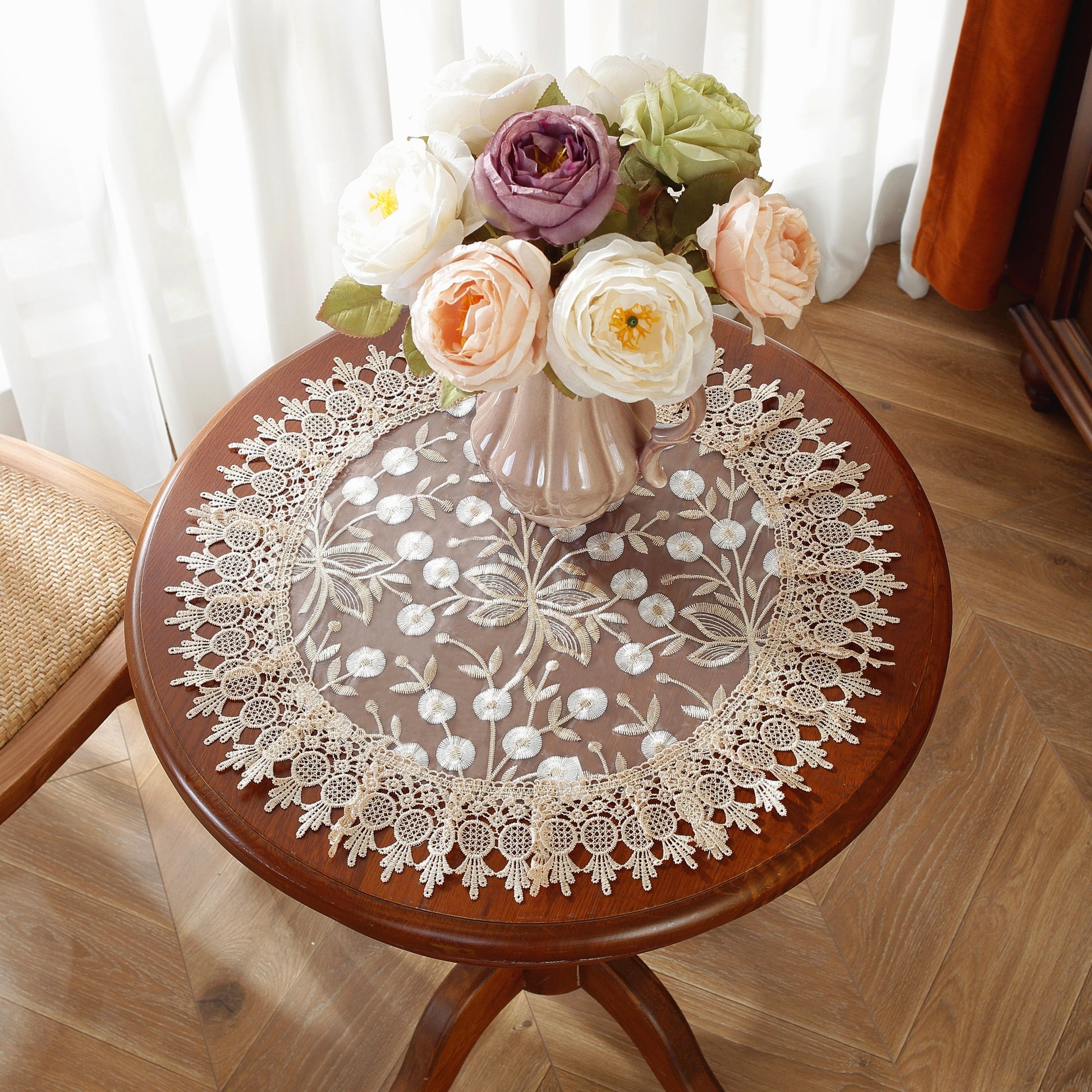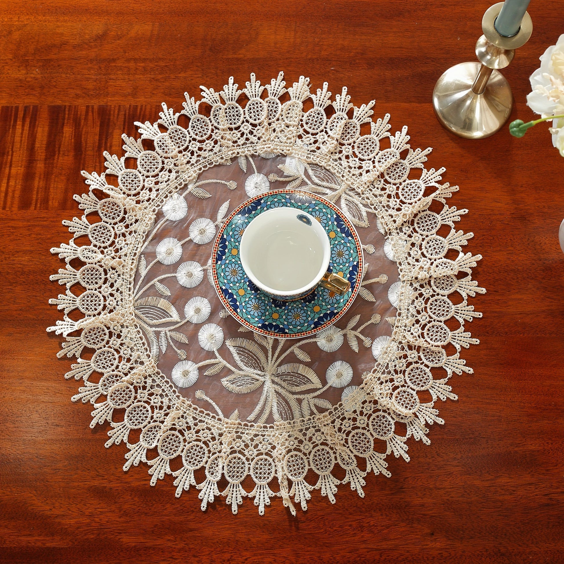 Individual de mesa de satén jacquard de poliéster grande y redondo con encaje bordado para mesa de comedor