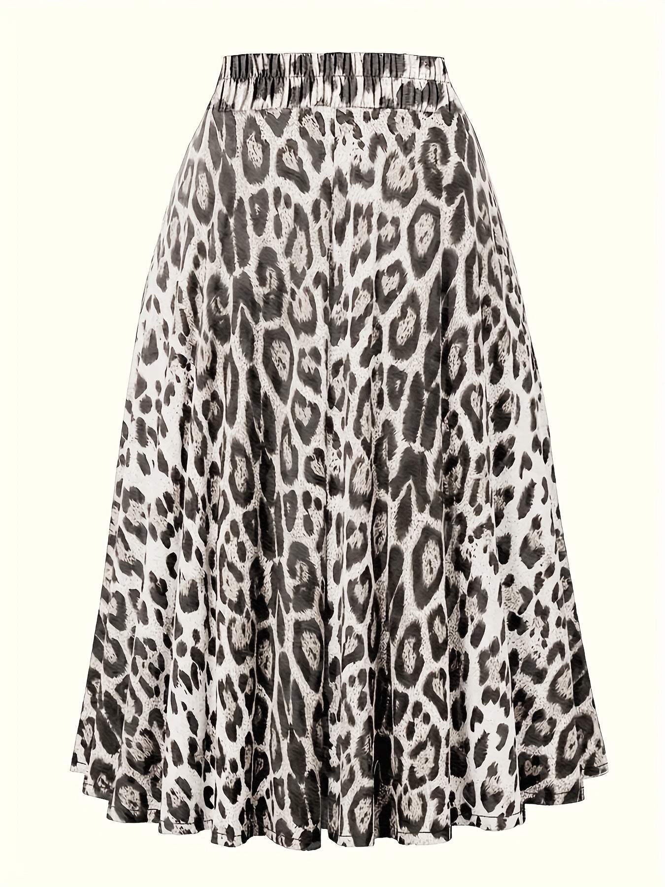 Falda de tamaño grande con estampado de leopardo y nudo para primavera y verano, poliéster, acampanada, no elástica
