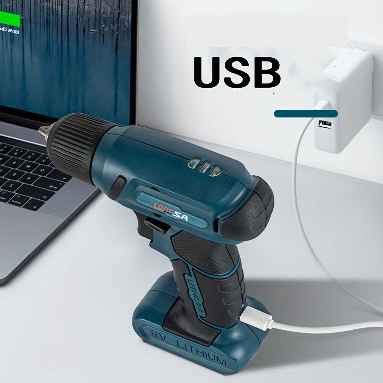 Juego de taladro inalámbrico con luz LED, batería de litio y brocas surtidas