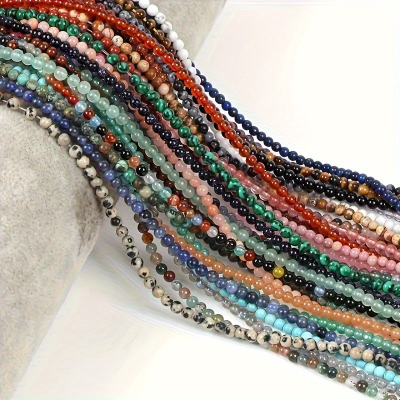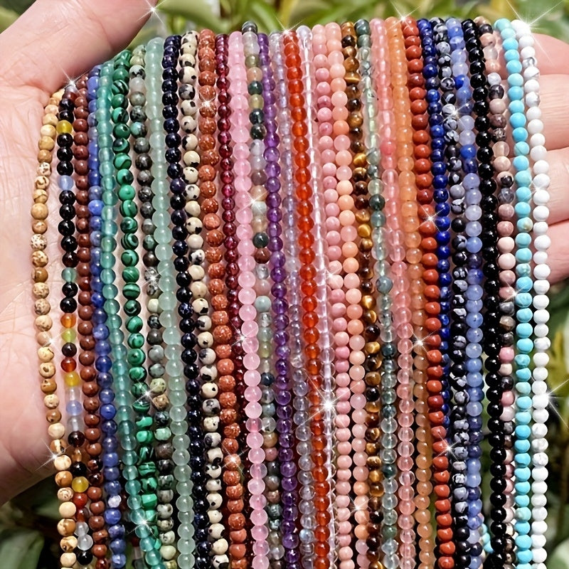 Cuentas separadoras de piedra natural de 3 mm para hacer joyería, amatista, cuarzo rosa, turquesa, ágata