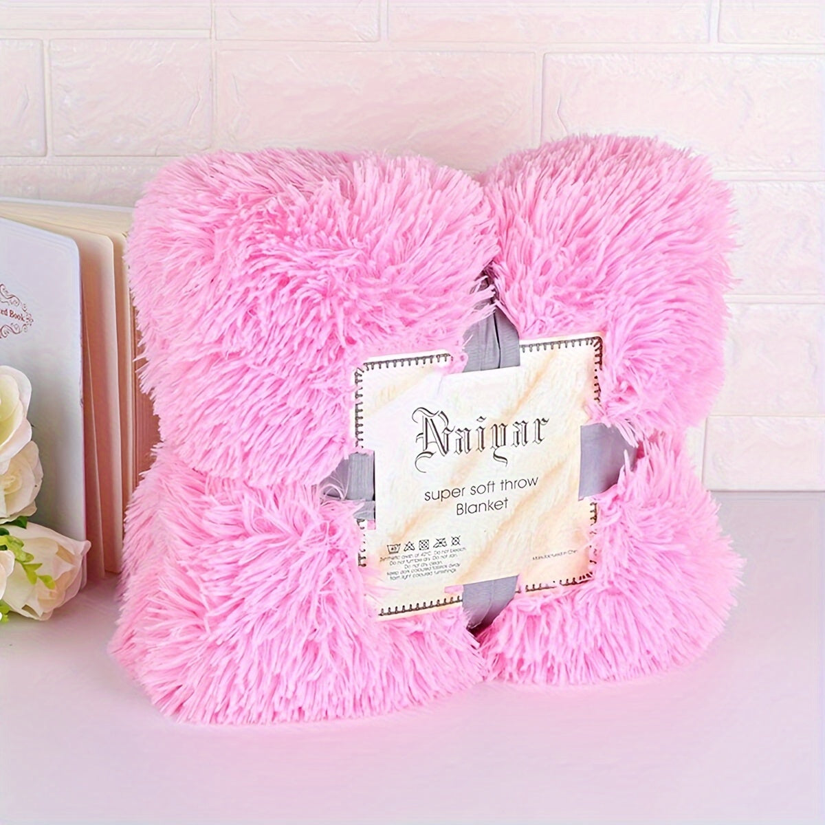 Manta de pelo sintético rosa, larga y peluda, coral de felpa, cubierta de invierno para sofá, manta de descanso