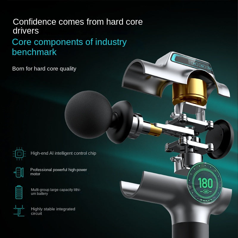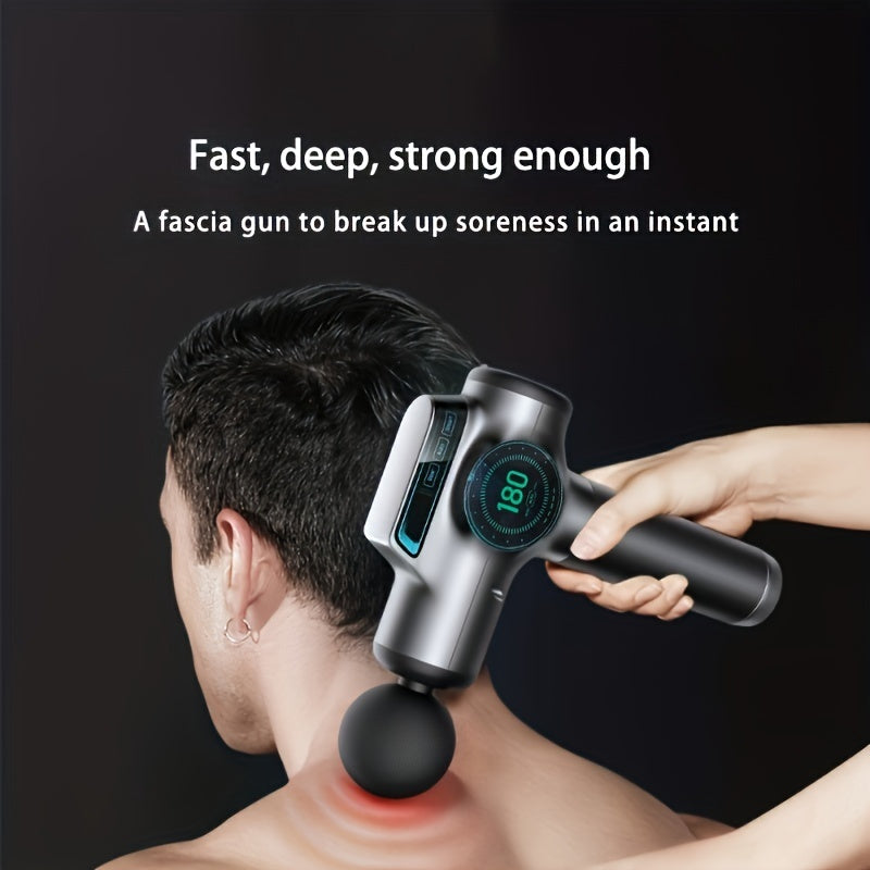 Pistola de masaje con pantalla LCD, 6 accesorios, recargable, relajación muscular profunda