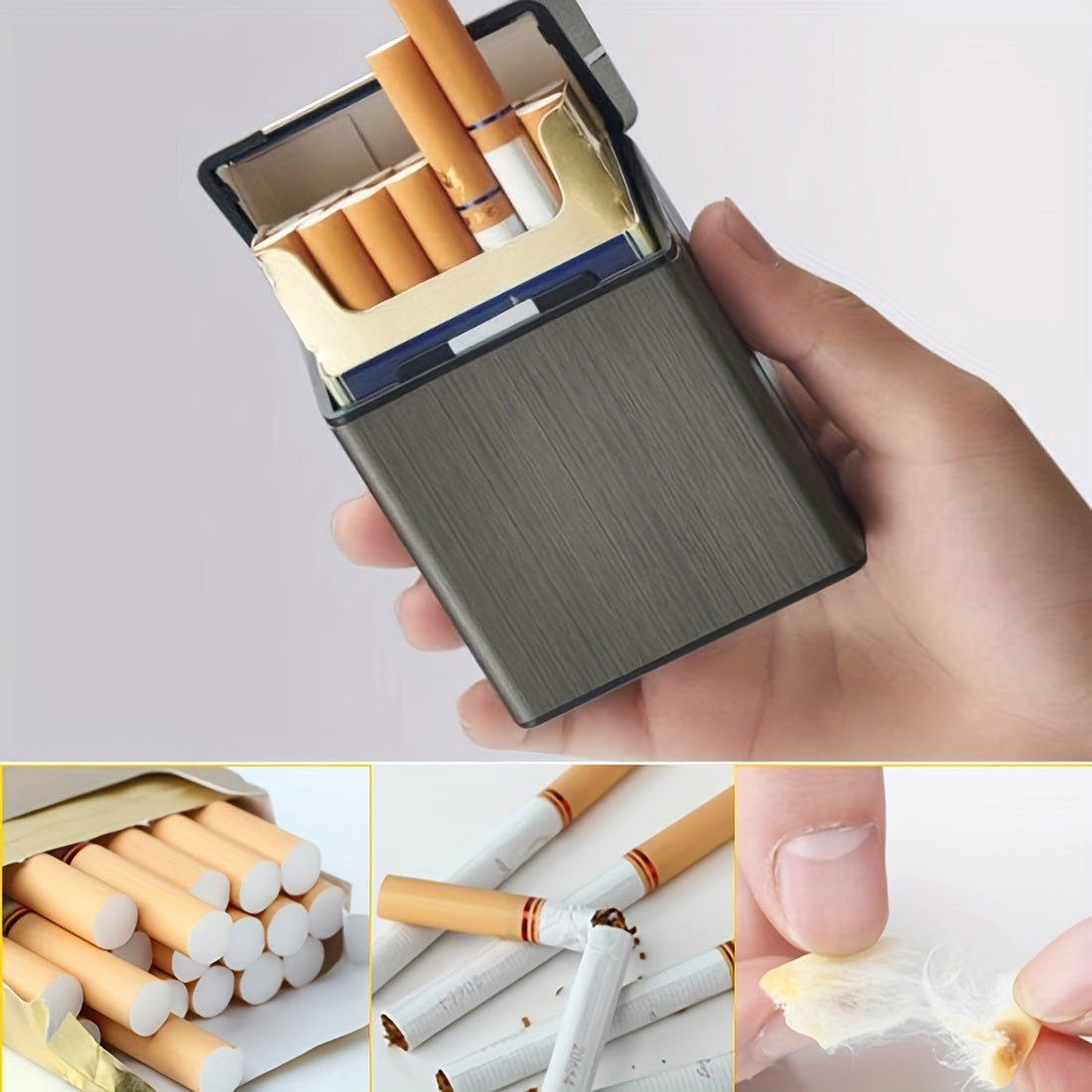 Hombre y mujer metal cepillado estuche para cigarrillos con imán y apertura giratoria para 20 cigarrillos
