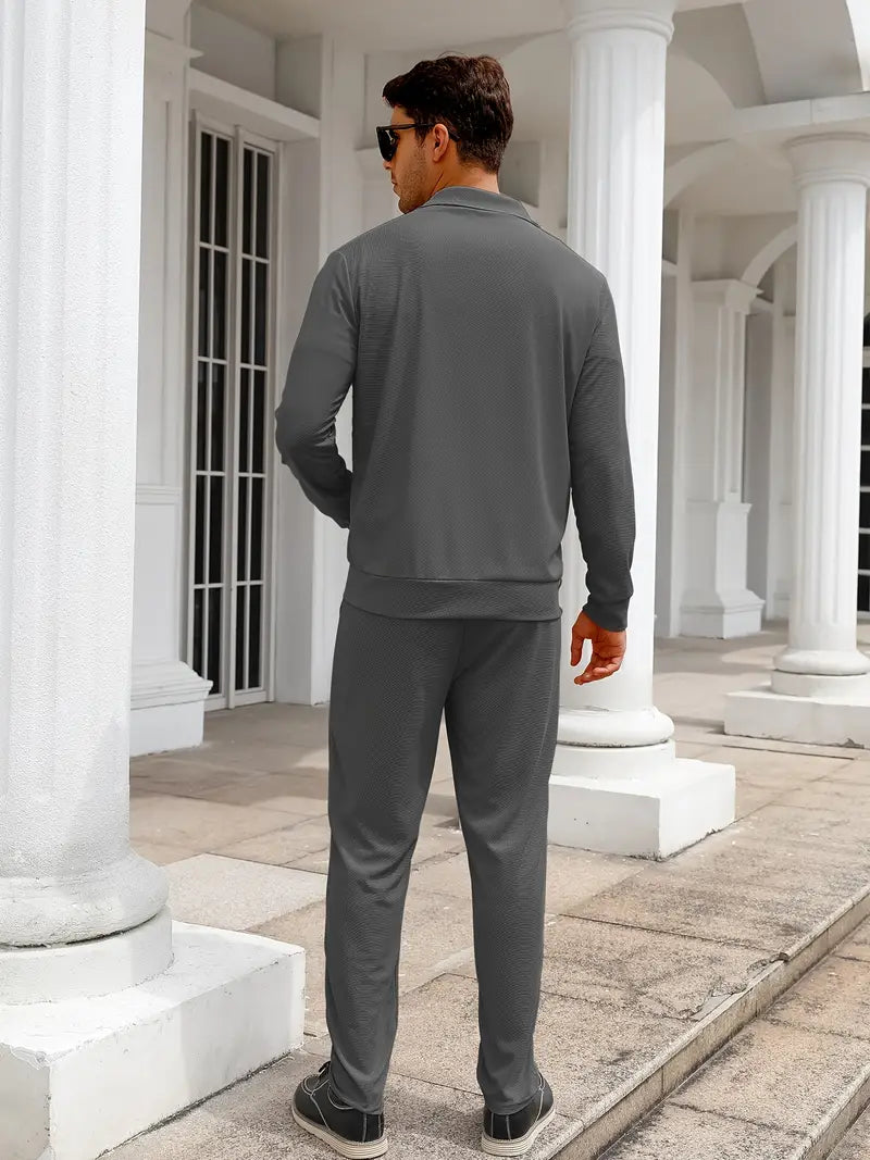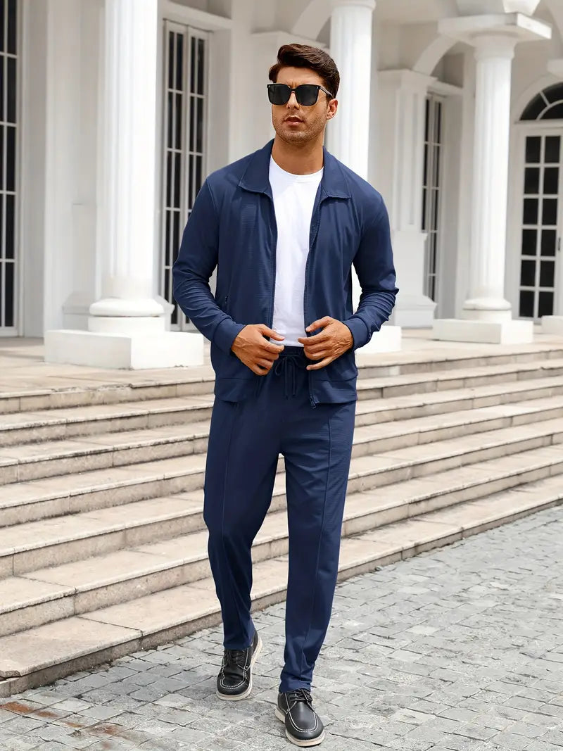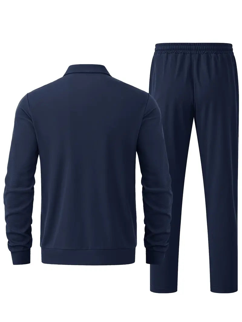 Conjunto atlético de poliéster para hombre con chaqueta con cremallera y pantalones para deportes al aire libre