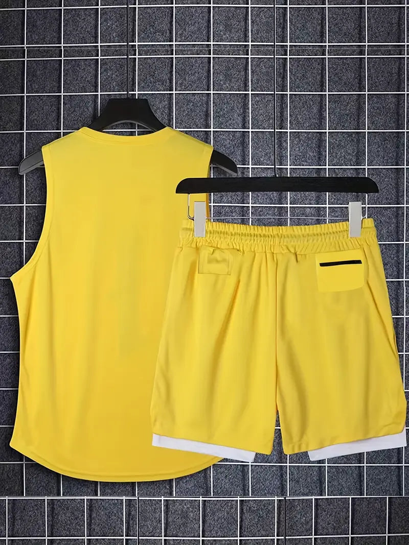 Conjunto deportivo de poliéster para hombre, camiseta sin mangas y pantalones cortos de baloncesto sueltos
