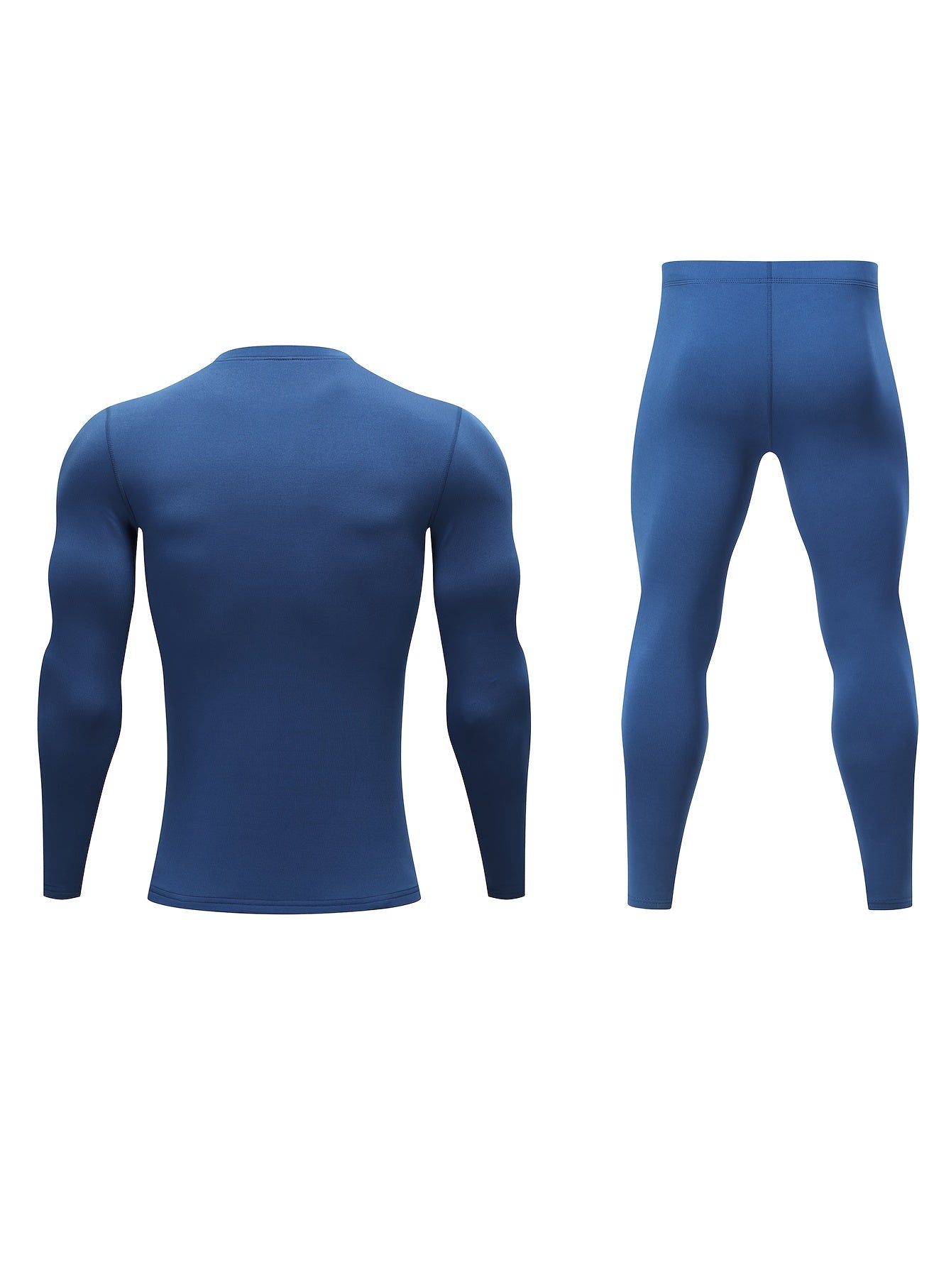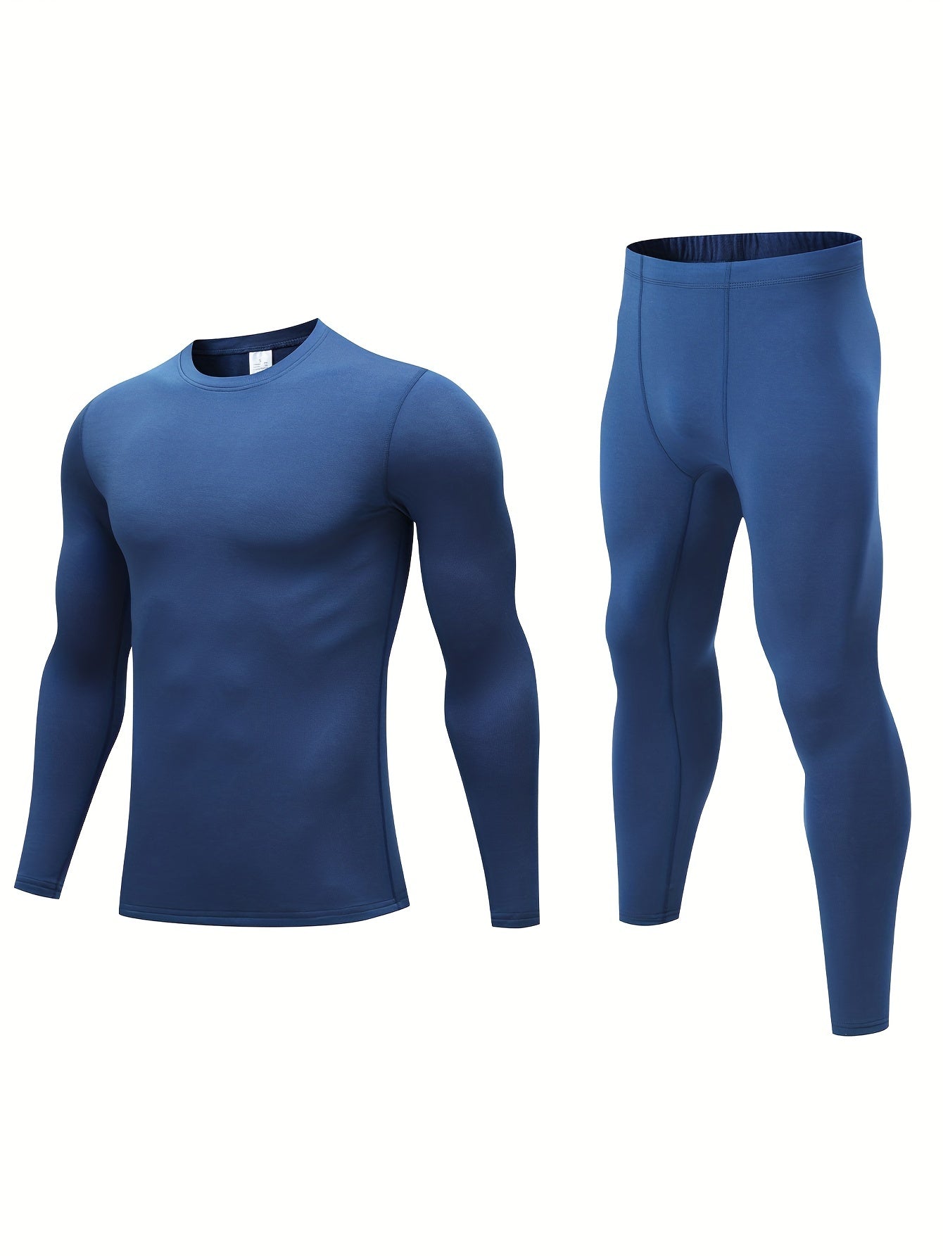 Conjunto de forro polar térmico azul para hombres para actividades al aire libre en invierno, tela elástica y cálida