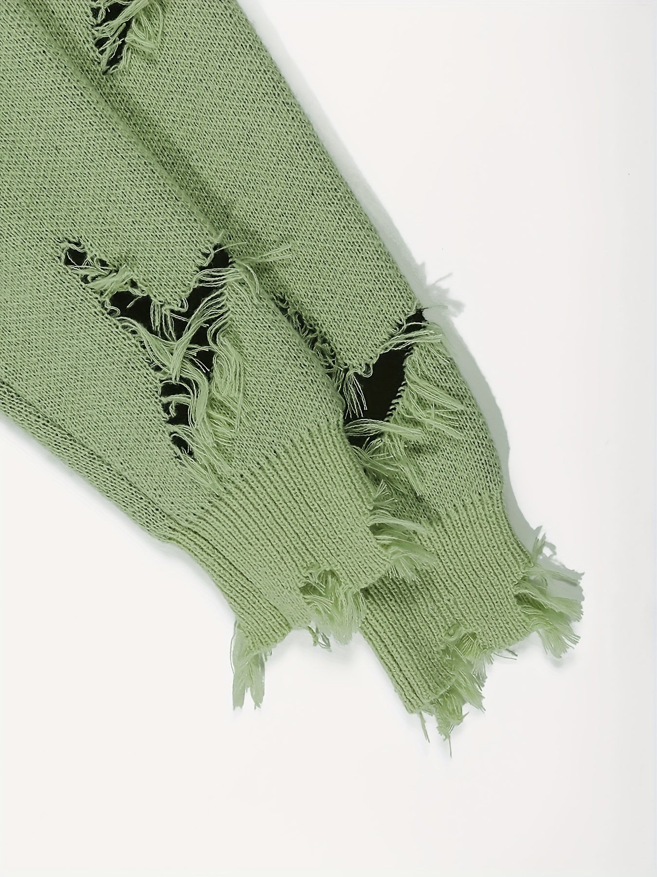 Suéter de punto para hombre con cuello redondo y detalles rasgados, casual, para otoño e invierno, al aire libre