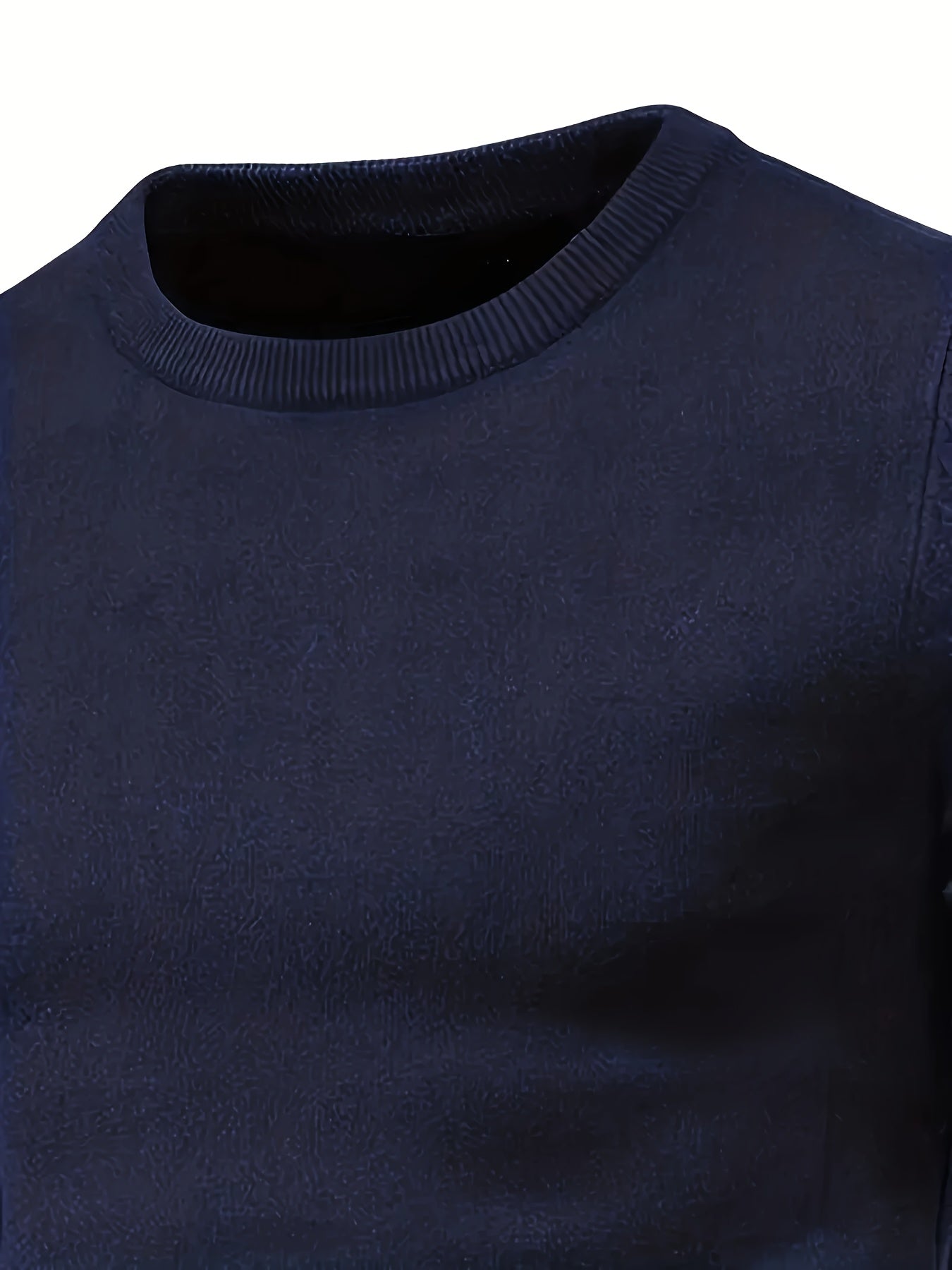 Suéter de cuello redondo con patrón geométrico para hombre, manga larga, ajuste regular, tejido de punto, para todas las estaciones