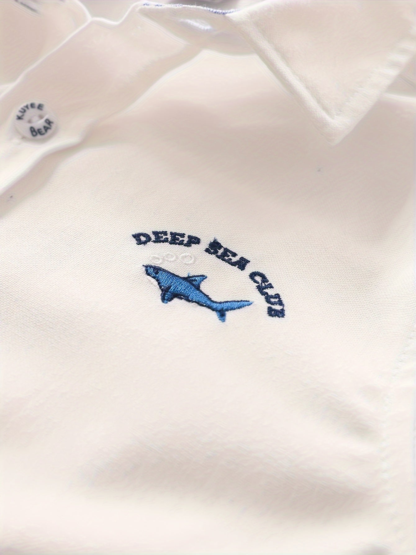 Camisa de algodón para hombres con bordado de tiburón para niños, primavera y otoño, azul, pequeño y mediano