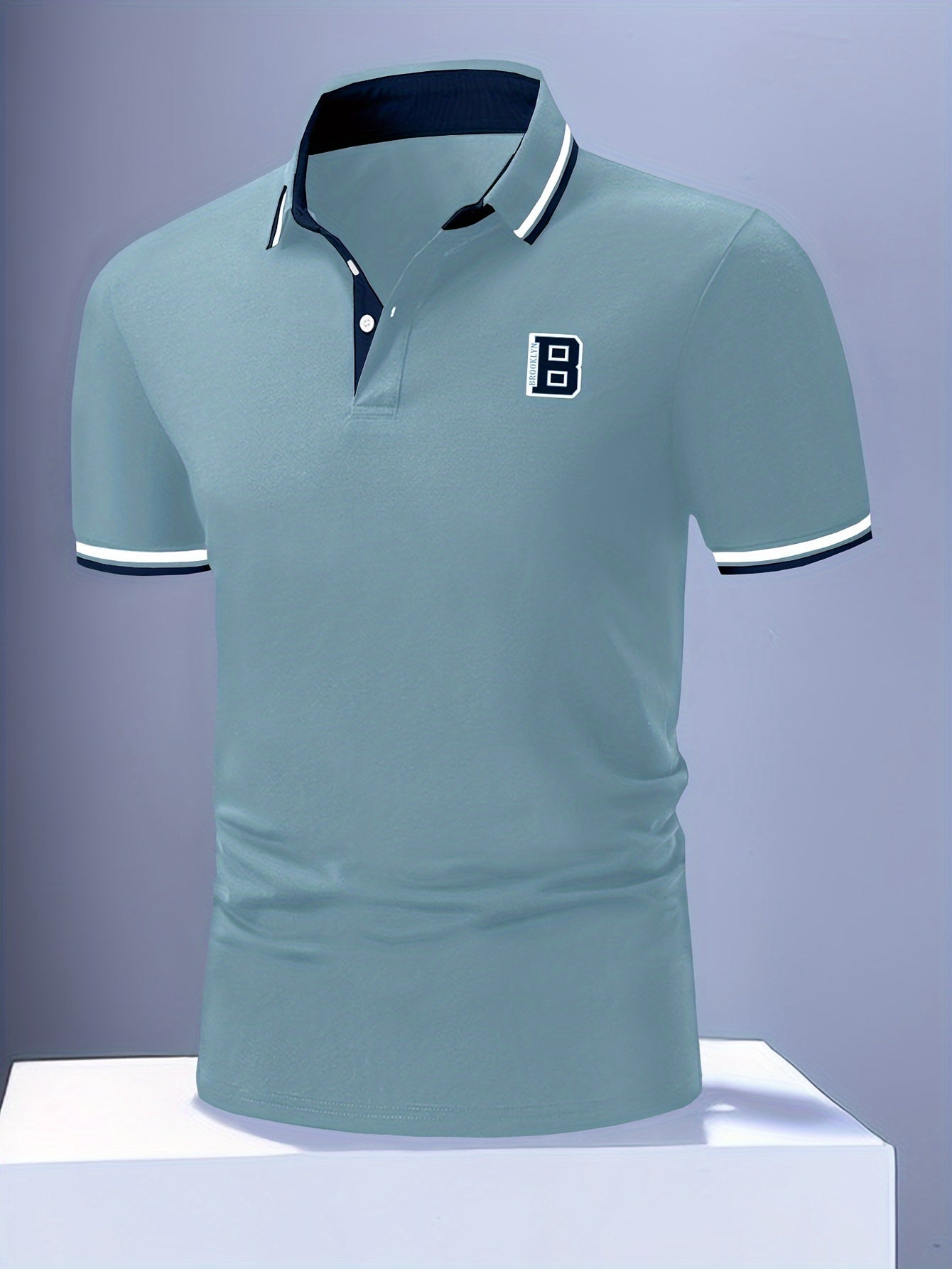 Camisa de manga corta para hombre con bloque de colores y estampado de letras, con solapa, casual para verano y golf